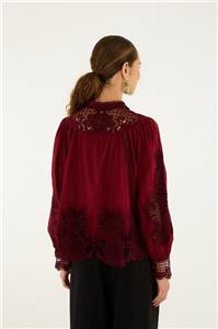 The Berry Garden Guipure Organic Cotton Blouse enchants with its deep berry hue and intricate guipure lace detailing, creating a harmonious blend of texture and transparency. Crafted from 100% certified organic cotton, it features a refined high neckline and billowing sleeves that gather softly at delicate lace cuffs. This top’s airy silhouette and botanical lace patterns evoke a romantic garden stroll, wrapping you in sustainable softness and playful elegance.