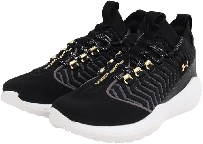 New Under Armour Harper 9 Turf Men's 12 Black/Gold/White Engineered Fit UA Charged Cushioning Midsole: This innovative technology absorbs impact and converts it into explosive speed and power, enhancing your performance on the field and giving you an edge over your competitors. UA IntelliKnit Upper: The upper of the shoe is designed with UA IntelliKnit technology, offering breathability and premium stretch. It provides the right amount of compression where you need it most, ensuring a comfortable fit throughout the game. Engineered Fit: The shoes feature an engineered fit that reduces flex pressure while increasing comfort. The bootie design provides locked-in support, allowing you to move with confidence on the field. Synthetic Leather Forefoot: The forefoot is made of durable synthetic leather, adding to the shoe's longevity. This feature ensures that the shoes withstand even the most rigorous training sessions and games. Versatile, Non-Marking Rubber Outsole: The outsole is designed with non-marking rubber, providing lightweight traction on a variety of surfaces. This feature ensures that you remain steady on your feet, whether you're training on turf, grass, or dirt.