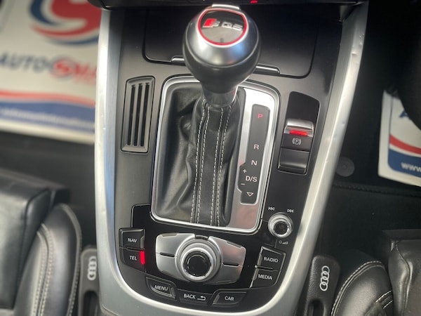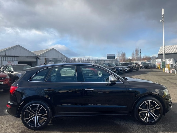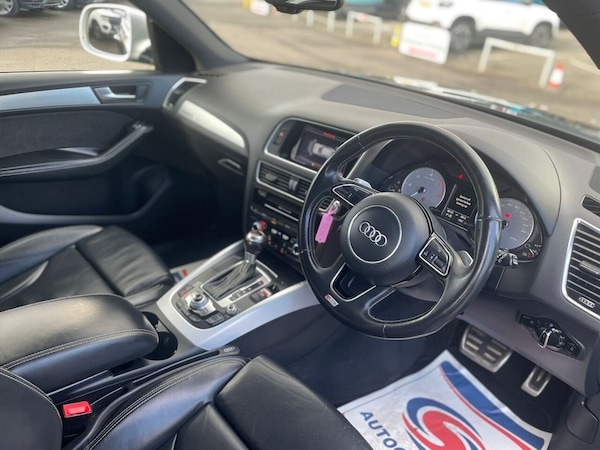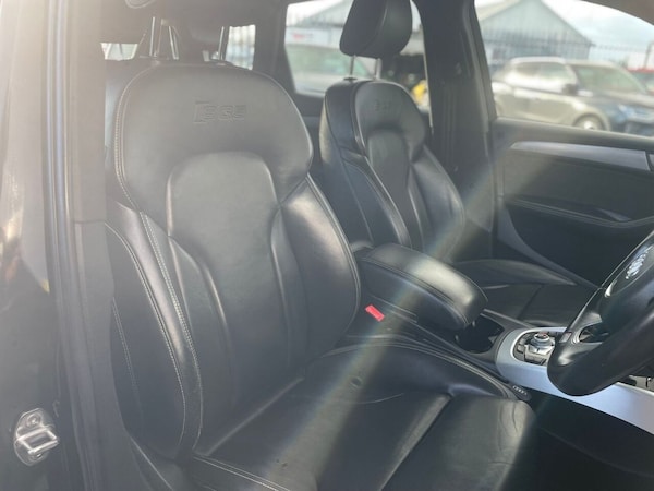 .12V Power Socket, 20in Alloy Wheels - 5-Parallel Spoke Design, 6.5in Colour Display Screen, ABS - Anti-Lock Braking System, AUX-IN Socket, Acoustic Windscreen, Active Door Reflectors, Air Conditioning - Deluxe Automatic at the Rear, Airbags - Driver, Airbags - Front Passenger, Airbags - Front Side, Alarm - Thatcham Category 1, Aluminium Roof Rails, Aluminium Scuff Plates with SQ5 Logo, Aluminium-Effect Door Mirror Housings, Amplifier - 180 Watt, Amplifier - 6 Channel, Anti Theft Locking Wheel Bolts, Audi Sound System, Auto-Dimming Rear-View Mirror, Automatic Headlight Range Adjustment, Automatic Wipers with Rain Sensor, Body Coloured Bumpers, Brake Calipers - Black with S Logo, Car Jack, Cloth Headlining in Black, Colour Drivers Information System - DIS, Concert Radio - MP3-CD Player, Cruise Control, Cup Holders - Centre Console, DAB Digital Radio, Deluxe 3-Zone Climate Control, Door Handles - Chrome, Door Mirrors - Electrically Adjustable and Heated, Door or Boot Open Warning, Double-glazed Side and Rear Windows, Double-glazed Windscreen, EBD - Electronic Brakeforce Distribution, ESP - Electronic Stability Programme, Electric Windows - Front and Rear, Electrically Adjustable 4-Way Lumbar Support, Electromechanical Parking Brake, Electromechanical Power Steering, Entrance Lights, Exhaust Tailpipe - Two Oval on Left and Right Side in Chrome Rolled Finish, First Aid Kit, Front Centre Armrest, Front Fog Lights, Front Footwell Lighting, Front Passenger Airbag Deactivation Switch, Front and Rear Floor Mats, Glovebox - Illuminated, Headlight Washers, Headlights - Coming-Leaving Home Function, Headlights - Light Sensor, Headlights - Xenon, Hill Descent Control, ISOFIX Child Seat Mounting for Front Passenger, ISOFIX Child Seat Preparation for Rear Seats with Top Tether, Illuminated Vanity Mirrors, Inlays - Matt Brushed Aluminium, Interior Light Package, Interior Lighting - Vents and Internal Door Controls, LED Daytime Running Lights, LED Rear Lights, Leather Package - Door Armrests, Misfuelling Inhibition, Mobile Telephone Preparation - Bluetooth Interface, Outside Temperature Display, Pollen Filter, Radiator Grille - S Design with SQ5 Logo Finished in Platinum Grey, Rear Parking Sensors, Rear Reading Lights, Rear Spoiler - Body Coloured, Remote Boot Release, Remote Central Locking, Rest Recommendation System, Roof Bars and Storage Bag, S Design Body Styling, S Instrument Dials, SDHC Card Reader, Seats - Front Electric Adjustment, Seats - Front with SQ5 Embossing,