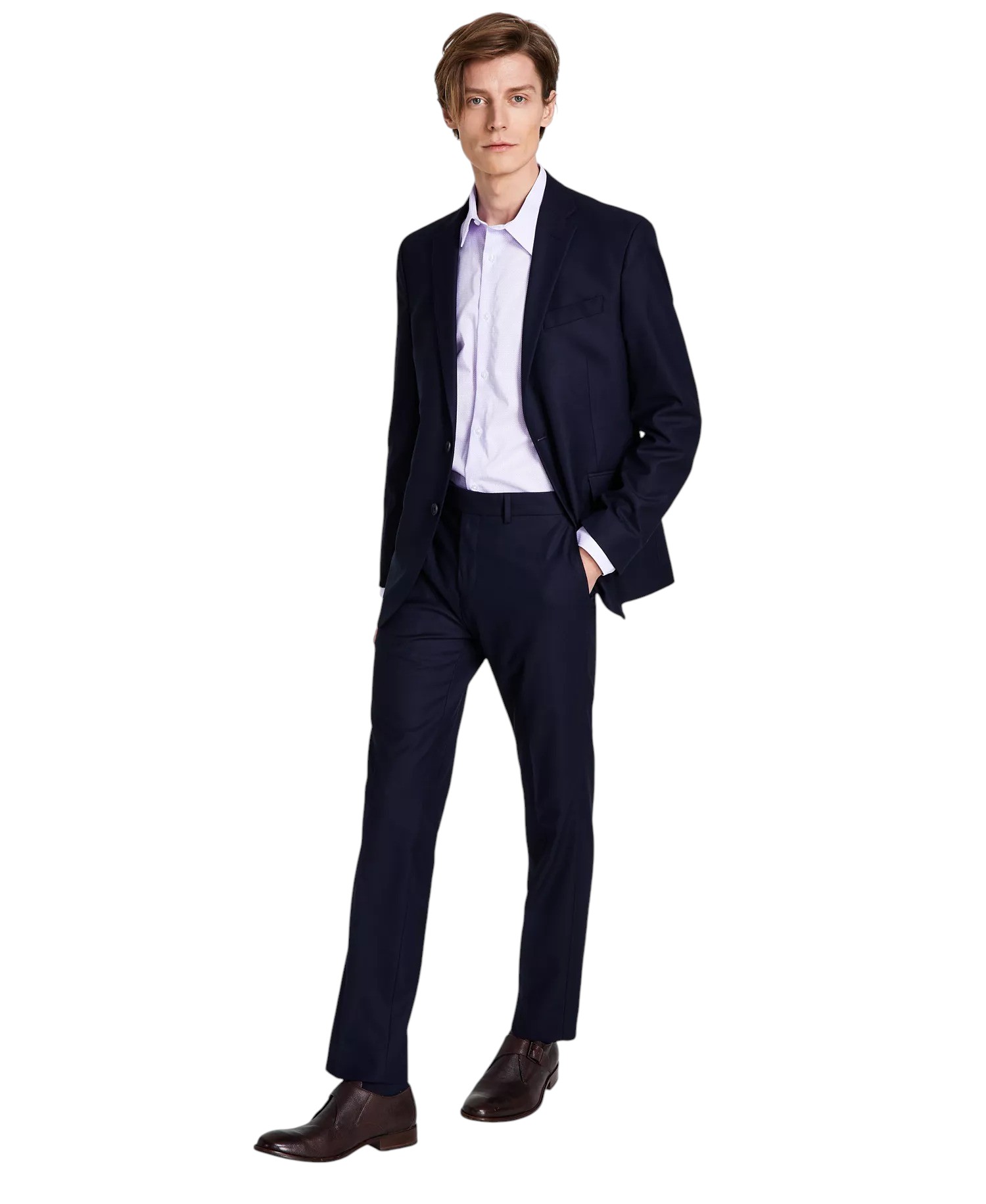 Kenneth Cole Mens Slim fit 2 Piece Suit 36 S / 29 Waist Navy Blue Solid Stretch