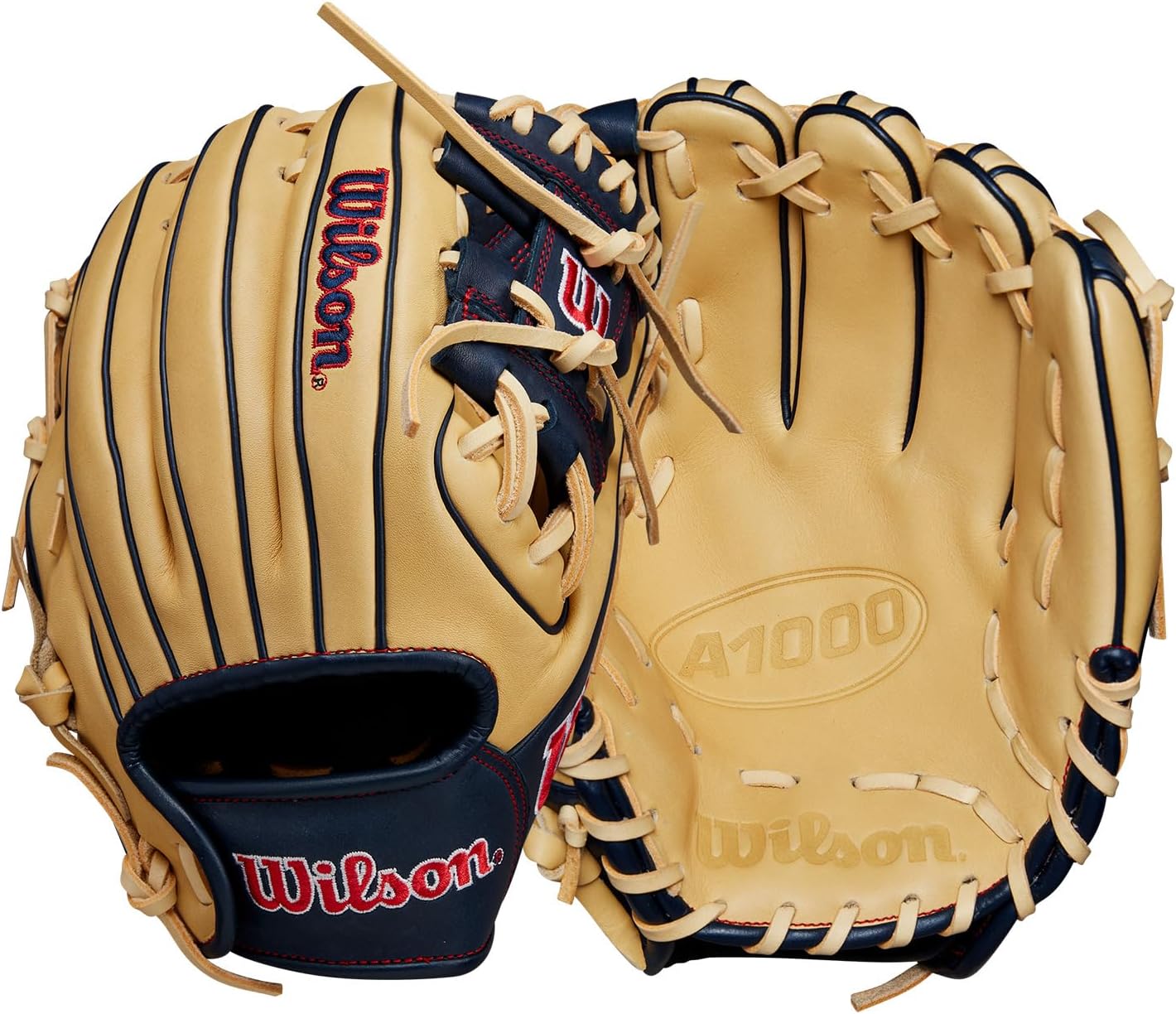 New Wilson Fall 2024 A1000® Infield Baseball Glove RHT 11" Blonde/Navy Wilson Fall 2024 A1000 PF11 11” Infield Baseball Glove - Blonde/Navy/Red, Right Hand Throw DriLex Wrist Lining: Keeps your hand dry and comfortable on the field and behind the dish Bold Logos: Bold logos strip away the distractions, allowing outlined, eye-catching Wilson logos to announce a new era in the iconic story of Wilson Ball Gloves. Full Grain Leather: Offers a soft feel that forms to the player’s hand without a meticulous break-in process. Leather in every A1000 ball glove is formed with the outermost layer of the hide to display its natural grain and texture. Pedroia Fit Technology: Shorter finger stalls and a narrow wrist opening to better suit players with smaller hands. Made in Wilson Pro Stock Factory: Handcrafted in the same Wilson factory that produces the Pro Stock A2000 ball gloves, the newest A1000 ball gloves are formed with close attention to detail. Rolled Binding