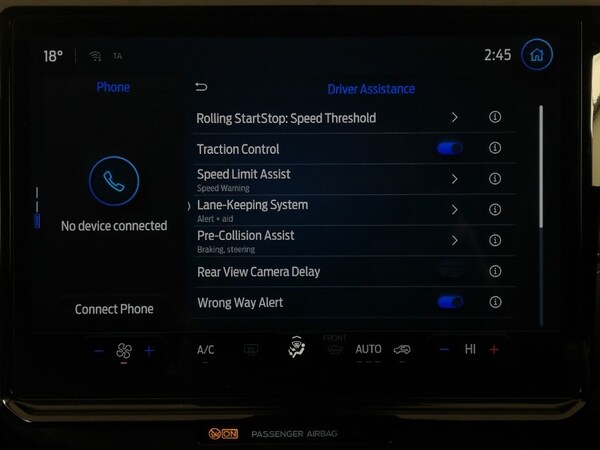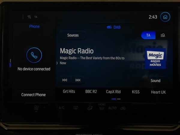 Android Auto, Apple CarPlay, LED daytime running lights, Driver impairment monitor, Full digital 12.8"" instrument cluster, Lane keeping aid with lane departure warning, Selectable drive modes(Normal, Eco, Sport, Slippery and Trail), Speed sign recognition, 12"" landscape touchscreen display with wireless apple car play and android auto 6 speaker audio system, Ford SYNC4 with connected navigation, Automatic headlights with rain sensing wipers and auto high beam, Quickclear heated windscreen, Centre console with armrest and stowage, Electronic automatic temperature control (EATC), Ford megabox extended bootspace, Manual 4 way driver seat adjust with lumbar adjustment