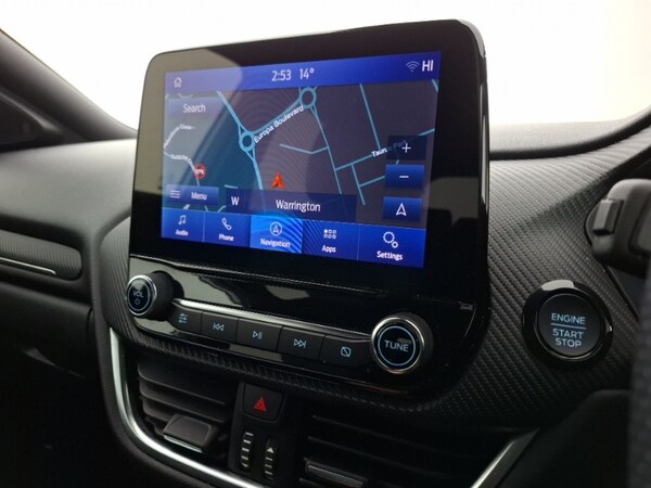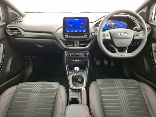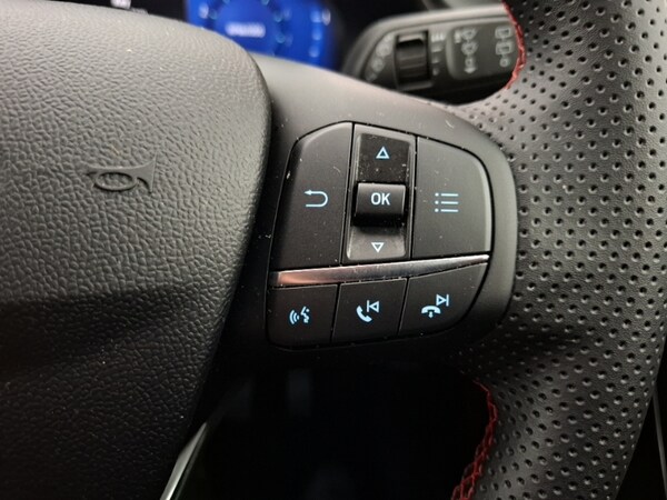 LED daytime running lights, Rear parking sensor, Power start button, Lane keeping aid with lane departure warning, B&O Premium Audio system + Ford SYNC 3 navigation pack - Puma, ST-Line flat bottomed sensico leather steering wheel with leather handbrake and aluminium gear knob