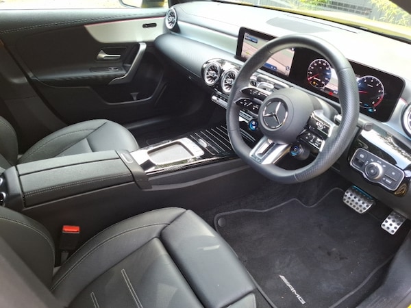 Manufacturer Approved Used, 24 month AMG warranty when purchased from Mercedes-Benz , Mercedes-AMG, Full Service History, AMG body styling - AMG front apron with front splitter and AMG rear apron and visible exhaust tailpipe trim elements, AMG Performance steering wheel in nappa leather, AMG suspension, AMG night pack - A Class, 10.25"" Digital instrument cluster display screen, Interior lighting - 64 colour Ambient lighting, Wireless charging, Smartphone integration with Apple CarPlay and Android auto, LED High Performance headlamps including integral LED daytime running lamps and adaptive highbeam assist, MBUX multimedia system, Hard-disk navigation, Dual bluetooth interfaces, Mercedes me connect including emergency call system, accident recovery, breakdown and maintenance management, Lane keeping system, ISOFIX and top tether child seat fixing points in two outer rear seats, Heat insulating dark tinted rear and rear side windows