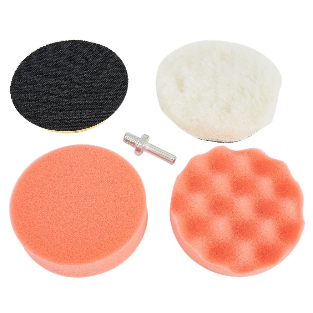 5Pcs 4Inch Car Polish Wax Sponge Foam Pad Polisher Buffer Set Drill Adapter Kit