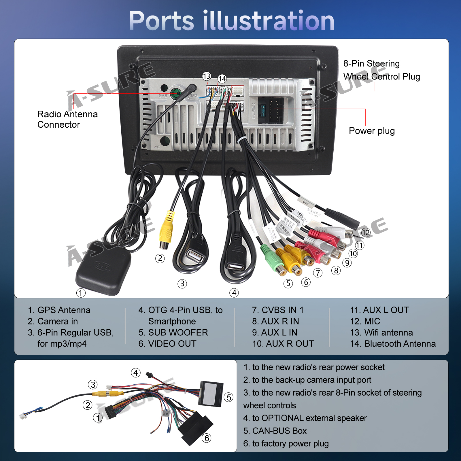 - Rear View function: Support aftermarket rear view camera, backing car more safer and convenient.