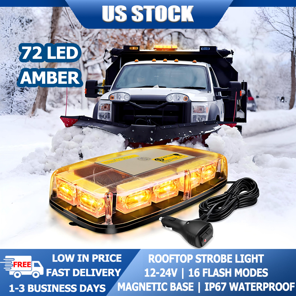 This professional amber rooftop strobe light is engineered for vehicle emergency safety warning, featuring 72 ultra-bright LEDs for super high visibility, stable magnetic mounting, and industrial-grade waterproof performance. Universally compatible with 12-24V vehicles, it is the ideal safety warning accessory for various professional operation and emergency scenarios, effectively enhancing vehicle visibility and on-site operation safety.