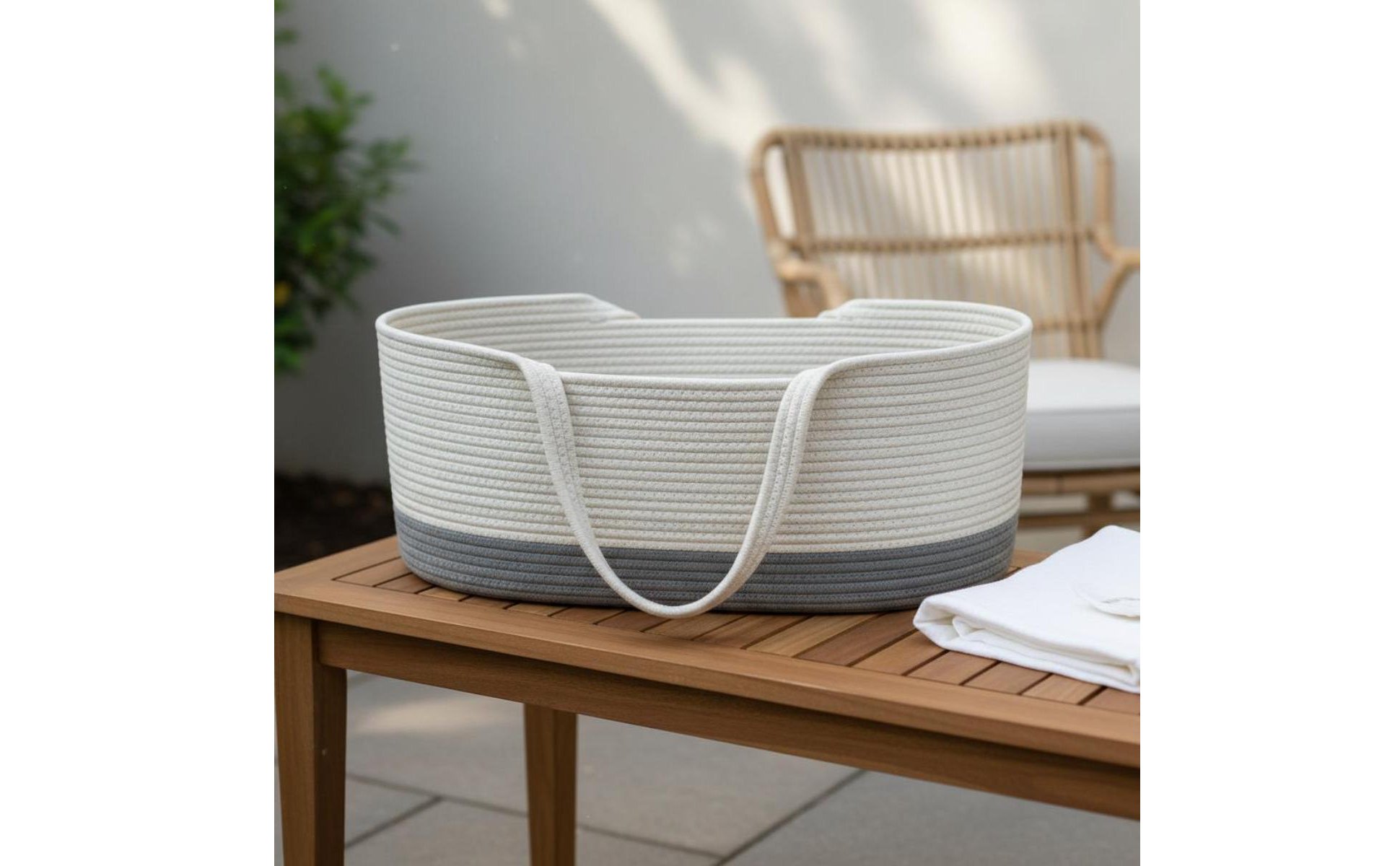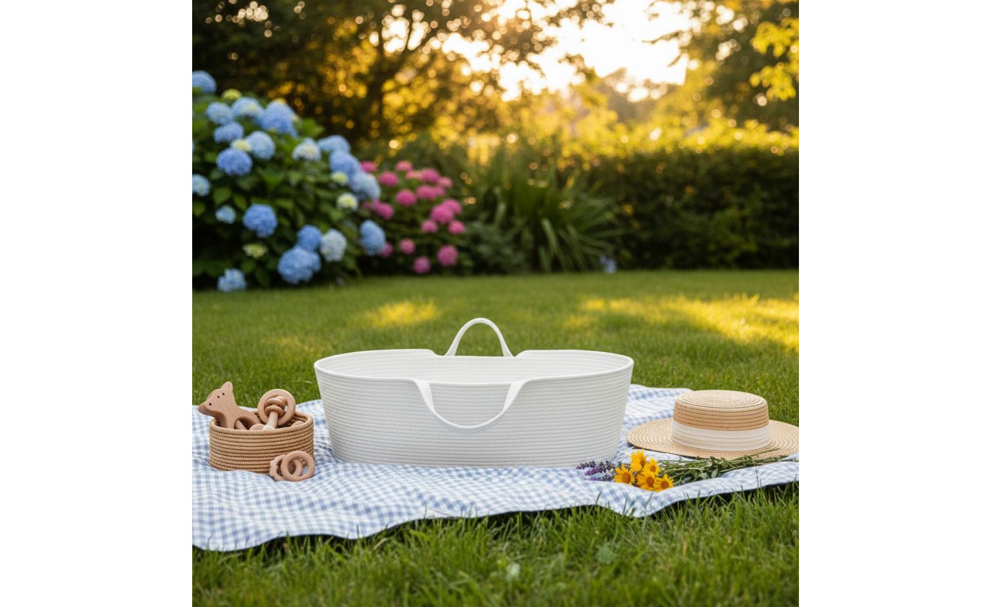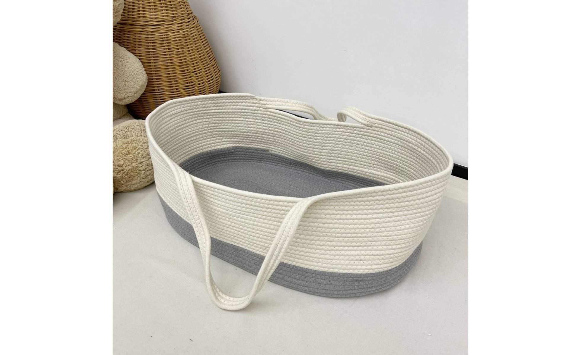 【Conception Portable】: Léger et doté de poignées robustes, ce couffin portable en corde de coton est facile à transporter, vous permettant de garder votre bébé près de vous, que ce soit à la maison ou en déplacement.