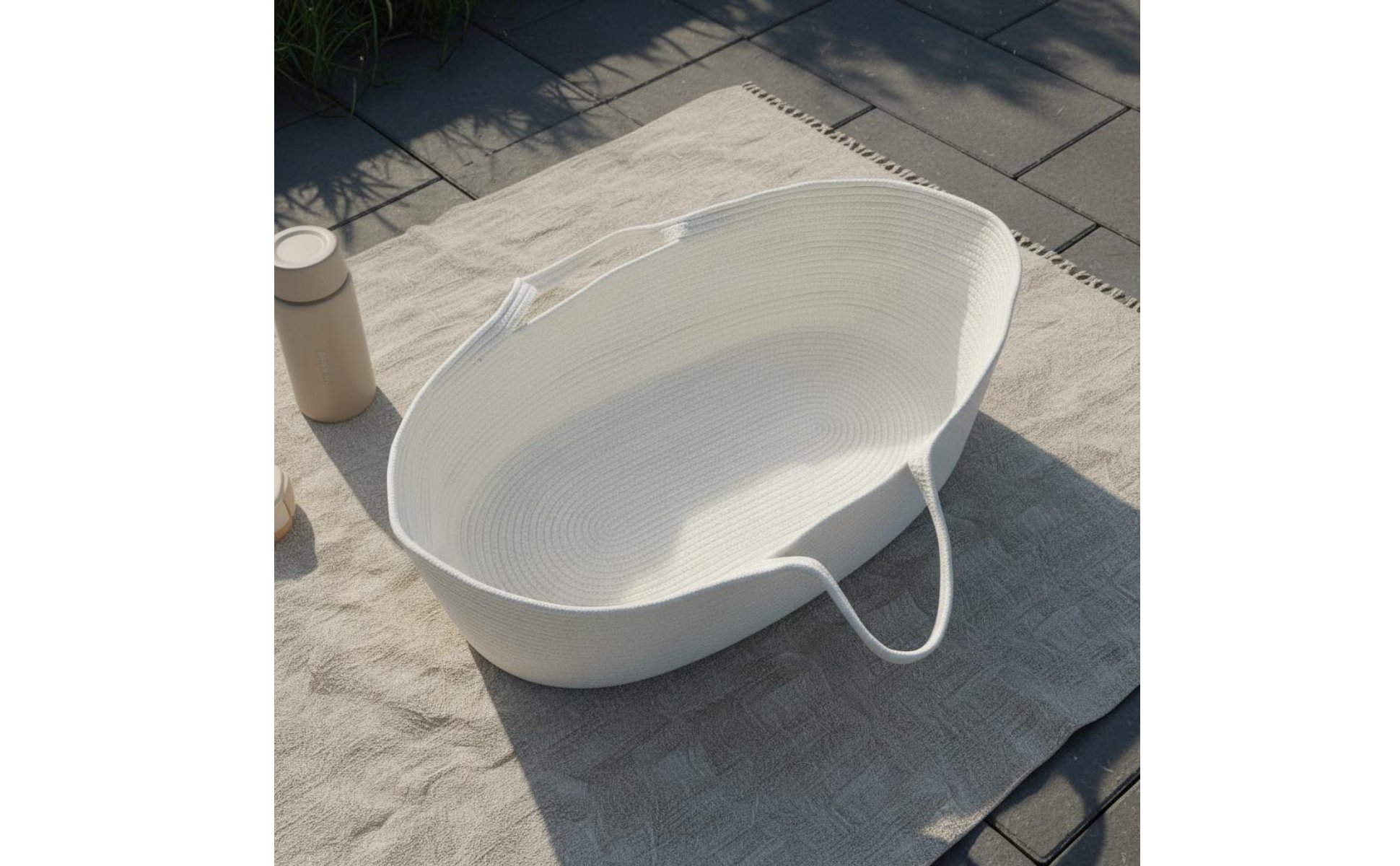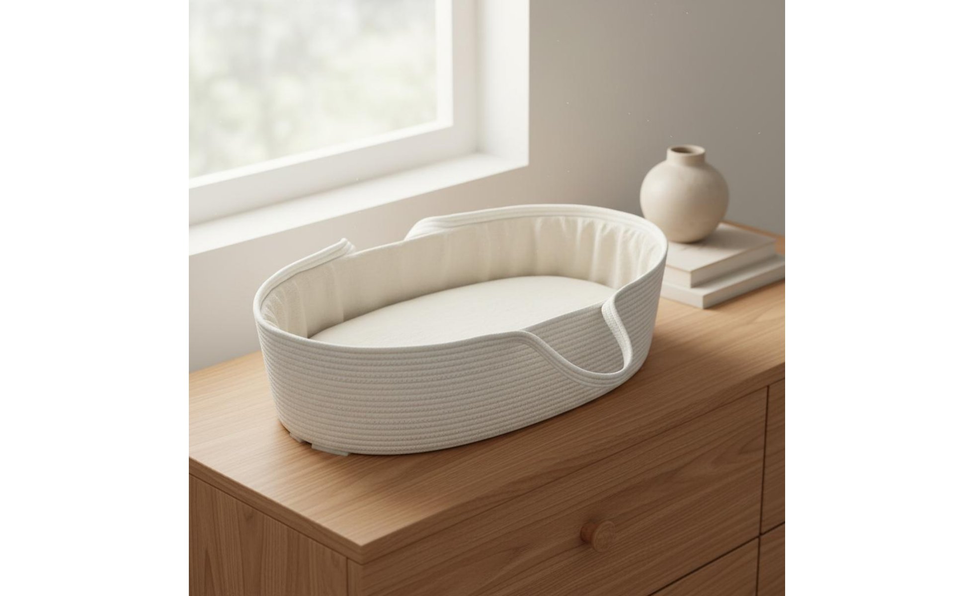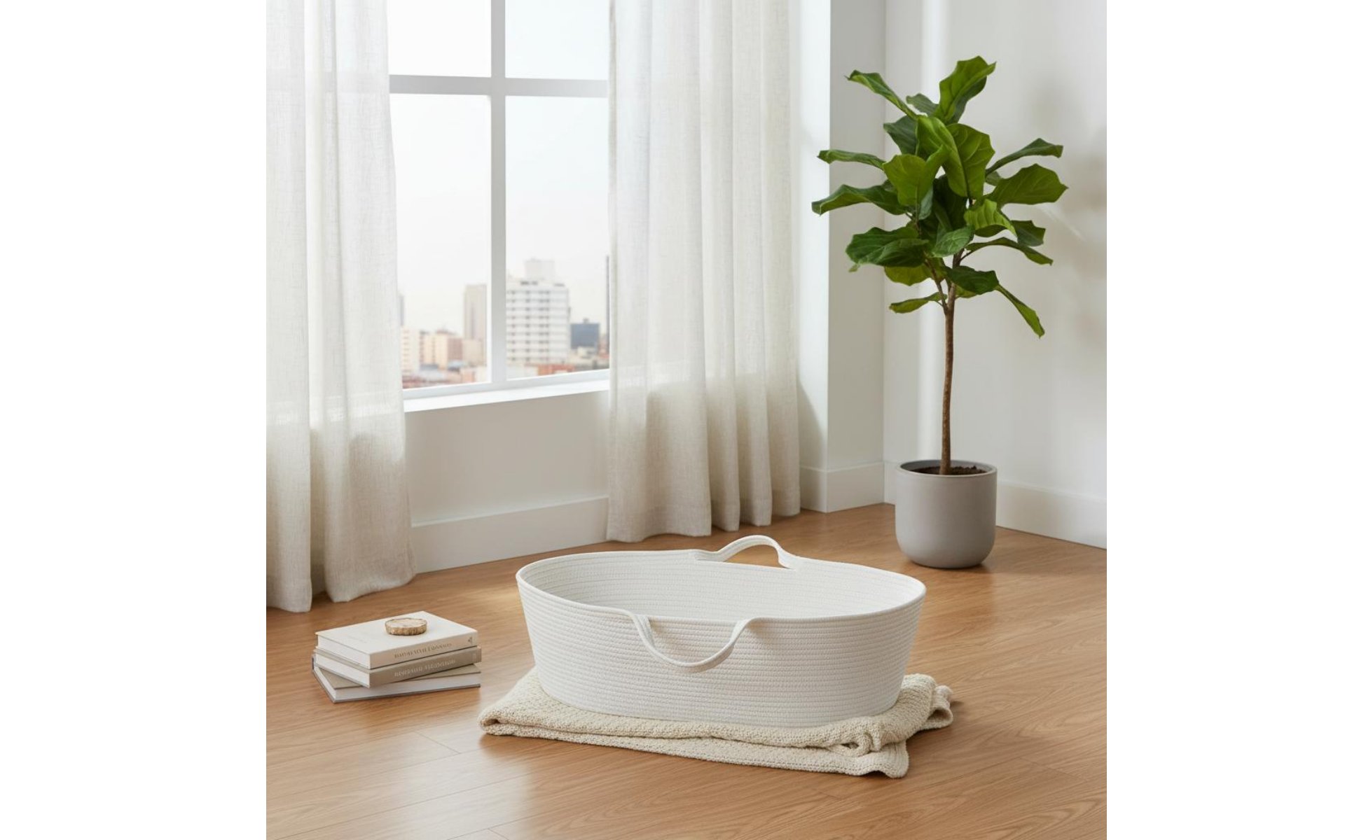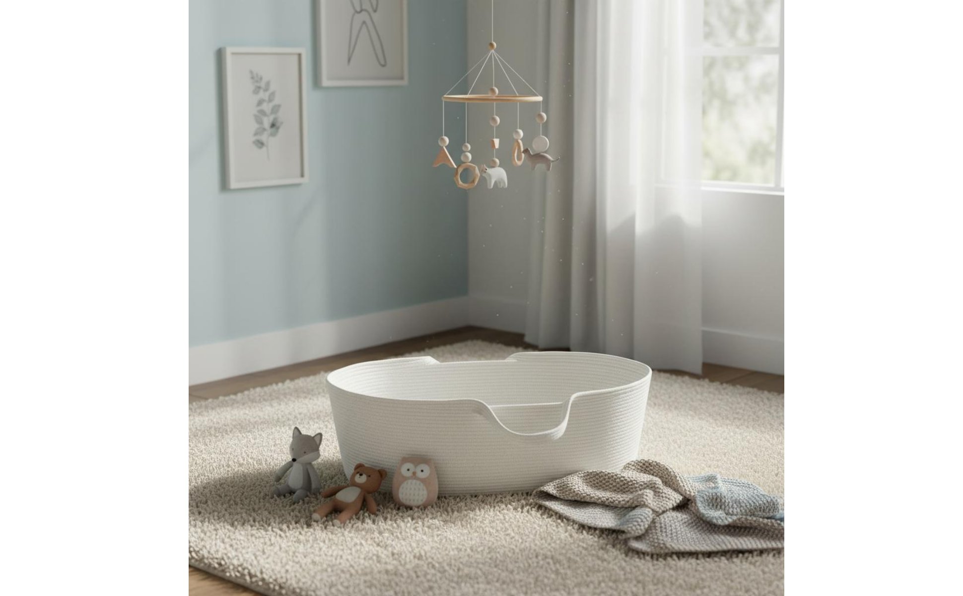 【Conception Portable】: Léger et doté de poignées robustes, ce couffin portable en corde de coton est facile à transporter, vous permettant de garder votre bébé près de vous, que ce soit à la maison ou en déplacement.