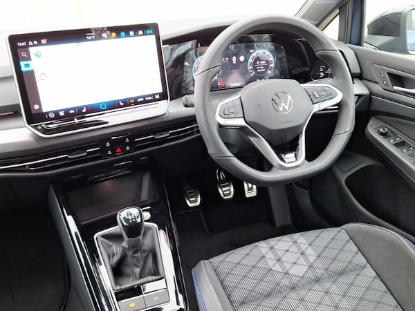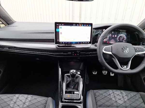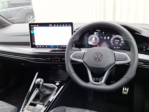 This is a Click & Collect location. Find your perfect car online and we’ll bring it closer to you. Reserve your favourite for only £99 and arrange collection to this branch. Contact us to learn more. Electric panoramic sunroof, Volkswagen Approved Used, 2 Year Service Plan for £99 - With PCP Finance, Navigation system, Adaptive cruise control (ACC), Dynamic steering, Oncoming vehicle braking when turning including swerve support, Traffic jam assist, We connect plus preparation, Wireless app connect, Start-stop system with battery regeneration (recuperation - energy recovery during braking), XDS electronic differential lock for improved traction and handling, Mobile phone interface with inductive charging feature, Digital radio reception (DAB), 2 USB C ports in front, 2 USB charging sockets on the centre console in the rear charging capacity upto 45W, Gaming platform via car app, Infotainment system with 12.9"" display, Automatic headlamp activation with Coming home and Leaving home feature, Rain sensor, Volkswagen logo in front, illuminated lighting animation with wake up/goodbye scenario and illuminated door handles, Welcome light with surround lighting, Exterior ambient lighting, Ambient lighting with 30 colour including LED light unit in front footwell with selectable light colour, Black roof lining, Front + rear black carpet mats, Titanium black instrument panel, Black exterior Styling package with Matrix LED headlights - Golf, Autonomous emergency braking front assist with pedestrian and cyclist monitoring, Tyre pressure loss indicator, Volkswagen roadside assistance