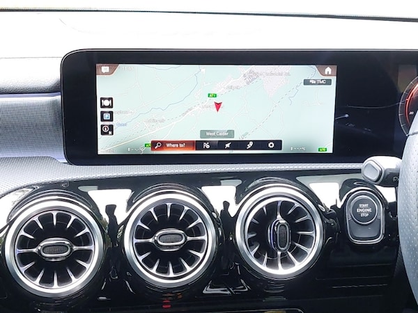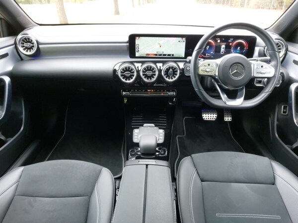This is a Click & Collect location. Find your perfect car online and we’ll bring it closer to you. Reserve your favourite for only £99 and arrange collection to this branch. Contact us to learn more. 18"" AMG 5 twin spoke light alloy wheels aerodynamically optimised painted in black with highsheen finish, MBUX multimedia system with DAB digital radio and touchpad including satellite navigation, AMG bodystyling - Front apron with splitter in chrome, rear apron with chrome trim and chrome visible trim elements in tailpipe, Artico man-made leather/Microfibre Dinamica upholstery with contrast stitching in light grey, 10.25"" Digital instrument cluster display screen, 10.25"" media display, 180 degree rear view camera with parking guidelines, LED high performance headlamps with integrated LED daytime running lights, Active parking assist with visual and audible warning of detected obstacles, Mercedes me connect including emergency call system, accident recovery, breakdown and maintenance management, Smartphone integration with Apple CarPlay and Android auto, Ultrasonic sensors positioned in the front and rear bumpers