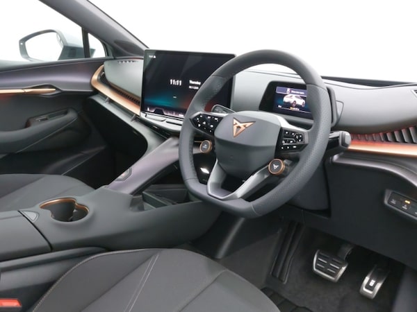 This is a Click & Collect location. Find your perfect car online and we’ll bring it closer to you. Reserve your favourite for only £99 and arrange collection to this branch. Contact us to learn more. 3 zone Climatronic air conditioning, Rear view camera, Navigation system with media and CUPRA Connect with online services, Heated leather wrapped multi function steering wheel with satellite buttons, Electric tailgate with virtual pedal + switch in driver door, Drive Profile Selection (Range, Comfort, Performance, CUPRA, Individual), 5.3"" Digital Cockpit with 15"" central display infotainment system, Bluetooth, Wireless charger, Adaptive cruise control, Dynamic road sign display, Intelligent park assist, Travel assist, Signature three eye triangular LED headlights, Wireless full link smartphone integration, Keyless entry and go, CUPRA interior sound, Auto dimming interior rear view mirror, ISOFIX points in outer rear seats with top tether anchorage points, Ambient lighting ""Pure""
