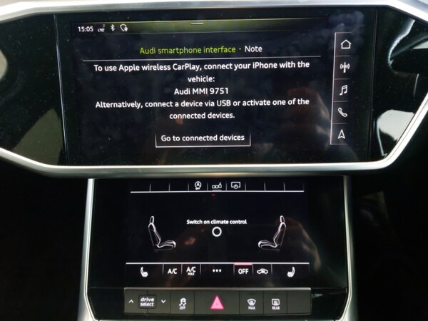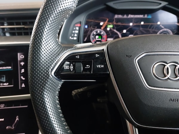 Android Auto, Apple CarPlay, LED daytime running lights, LED Headlights, Voice control system, Service interval indicator, Progressive steering, MMI navigation with MMI touch + twin touch screens 8.8"" and 8.6"" with haptic and acoustic feedback, Lane departure warning system, Electric boot lid release, Bluetooth interface, Automatic start/stop system with coasting functionality, Audi smartphone interface, Audi drive select, Audi connect safety and service (e-call), 7"" high resolution colour driver information display system, Sports suspension, Diesel particulate filter, 12V Mild hybrid, USB connection, DAB Digital radio, Auxiliary input socket, Audi music interface, Windscreen with acoustic glazing, Signature rear LED light design, S Line side skirts, S line rear diffuser and grille in matt black with matt aluminium tailpipes, S Line front and rear bumpers, S Line badge on front fender, S line air inlet design with inlay in matt aluminium, Radiator grille in titanium black matt, single frame in chrome and horizontal struts in matt aluminium silver, LED signature front daytime running light, Headlight washers, Frameless auto dimming interior rear view mirror, Electrically adjustable, heated and folding door mirrors with driver memory function and integrated LED indicators, 2 zone deluxe electronic climate control, 4 way electric lumbar support for driver and front passenger, 40/20/40 split folding 3 rear seat bench in 3 parts with rear centre armrest, Black cloth headlining, Front centre armrest, Front head restraints, Heated front seats, Height/reach adjust steering wheel, Illuminated door sill trims with S logo, S line front and rear floor mats with contrast stitching, Non smoking pack - A6, Audi pre-sense front, Airbags - Front side, front and rear including head, 3 point seatbelts on all seats, Warning triangle and first aid kit, Electronic Stability Control (ESC) including ABS, ASR and EDL, Remote central locking, Keyless Go, Immobiliser, Anti-theft wheel bolts and wheel loosening detection