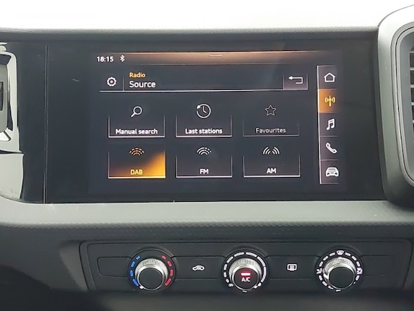 10.25"" Digital instrument cluster display classis style instrument dials + speed,odometer,time,outside temperature,telephone menu + fuel level warning, 15"" 5 arm design alloy wheels, Audi smartphone interface with connect compatible smartphone via USB directly MMI display + Nav,music, third party apps controlled via MMI controller, DAB Digital radio, Rain and light sensors, LED headlights with LED rear lights + dynamic rear indicators + headlight adjustment and high beam, turning light + LED daytime running lights, Titanium grey cloth headlining