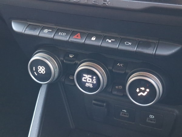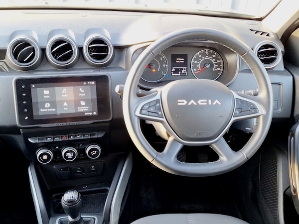 Bluetooth, Satellite navigation, Cruise control, LED Headlights, MirrorLink, Rear parking sensor, Speed limiter, Steering wheel audio controls, Multi view camera, Reversing camera, Blind spot warning, Automatic front wipers, Electric folding door mirrors, 60/40 split folding rear seat, Automatic air conditioning, Isofix points for child seats in both outer rear seats, Keyless entry, 17"" Black alloy wheels with copper brown Dacia logo