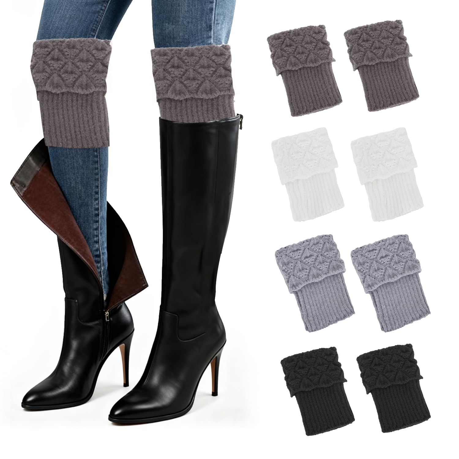Versatile Styling Options: Our boot socks are available in 4 colors, they pair seamlessly with heeled boots, mid-calf wedge boots, bare legs with heels, and more. Wear them over bare legs, skinny jeans, leggings, or tights—no bulky fabric inside your boots. Perfectly suits both over-the-knee boots and ankle boots, balancing fashion and warmth effortlessly