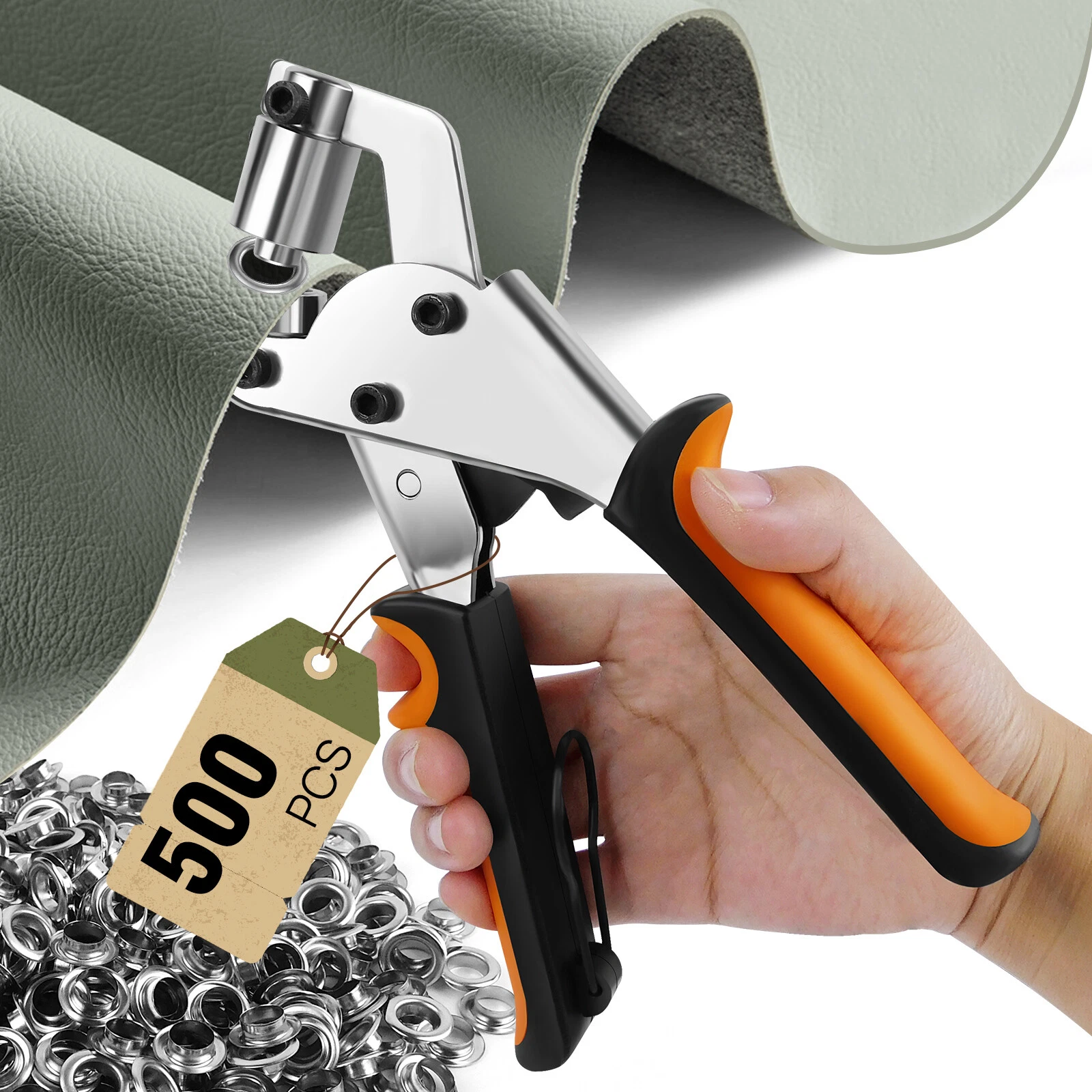 Eyelet Pliers Hole Punch Complete Tool Kit Set With 500PCS 10MM Eyelets Craft
