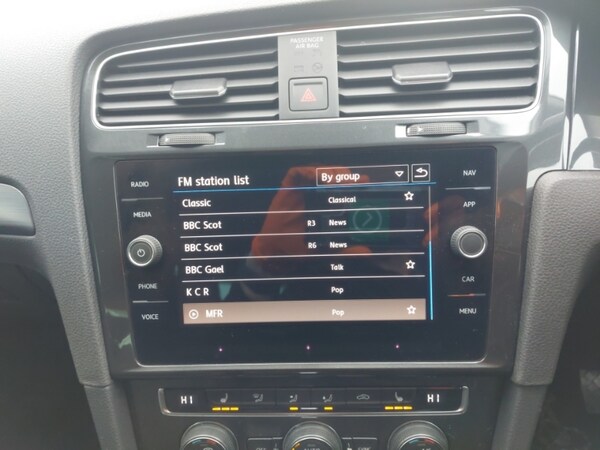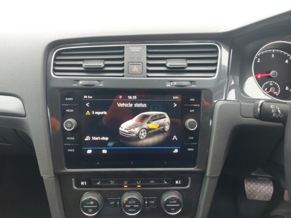 Bluetooth telephone and audio connection for compatible devices, Climate control - 2 zone electronic air conditioning with automatic air recirculation and allergy filter, Premium USB cable in choice of either Apple or Android smartphone compatibility, Think blue trainer driver tips and journey analysis, Stop/start system, Speedo, rev counter, electronic odometer, trip, service interval display, exterior temperature and fuel gauge, Speed limit display, Push tank flap, Power assisted speed sensitive electro-mechanical steering, Driving Mode Selection with four preset modes - Eco, normal, sport or individual modes, ACC - Adaptive cruise control with front assist, forward collision warning, distance monitoring, city emergency brake and speed limiter, XDS electronic differential lock, DAB Digital radio receiver, Composition media system, Volkswagen media control, USB and SD card connectivity, SMS Functionality, Multi device interface (MDI) via USB connection, Driver Personalisation profile selection, Rear tinted glass 65% light absorbing from B pillar backwards, Range adjustable headlights via infotainment system with LED daytime running lights, Electrically adjustable and heated door mirrors, Dusk sensor + automatic driving lights, 60/40 split folding rear seat backrest, Instrument lighting white adjustable panel illumination, Height and reach adjustable steering wheel, Grab handles front x 2, rear x 2 with integrated coat hooks, Dust/pollen filter, Cooled glovebox, Winter pack - Golf, Mirror pack - Golf, Convenience Pack - Golf
