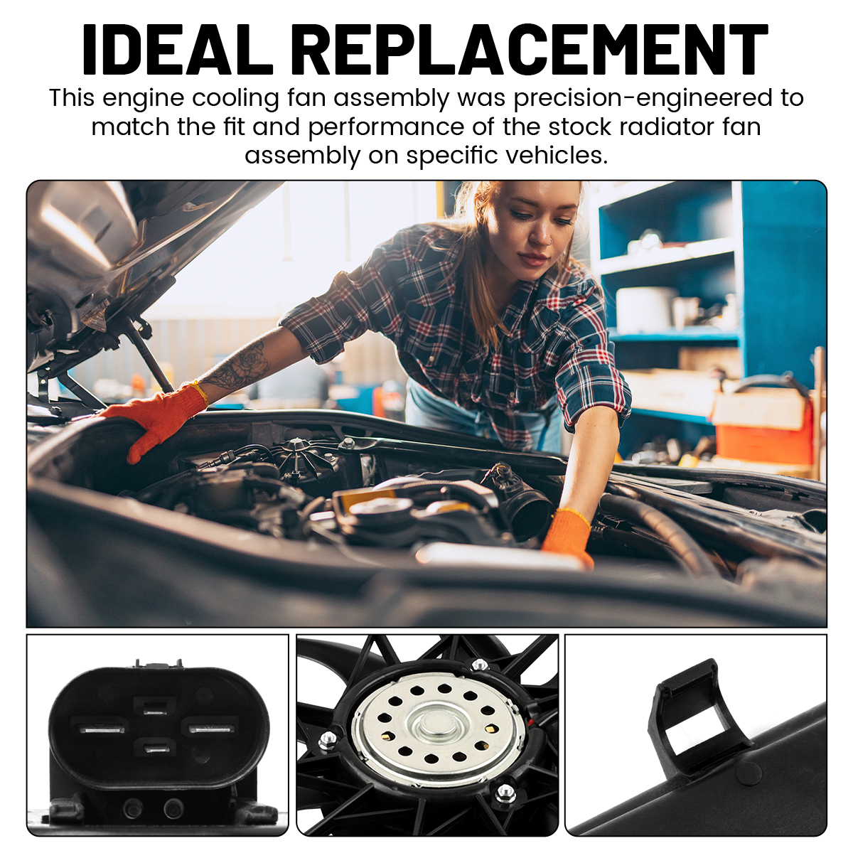 2.Ideal replacement.This engine cooling fan assembly was precision-engineered to match the fit and performance of the stock radiator fan assembly on specific vehicles.