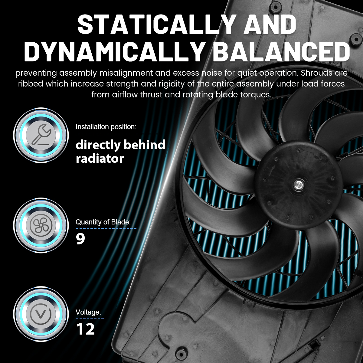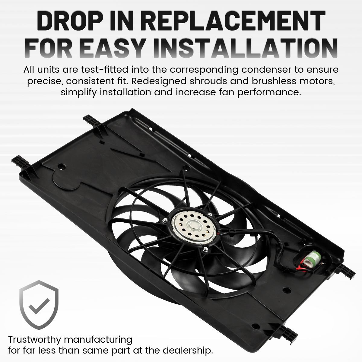 1.Drop in replacement for easy installation.All units are test-fitted into the corresponding condenser to ensure precise, consistent fit. Redesigned shrouds and brushless motors, simplify installation and increase fan performance.