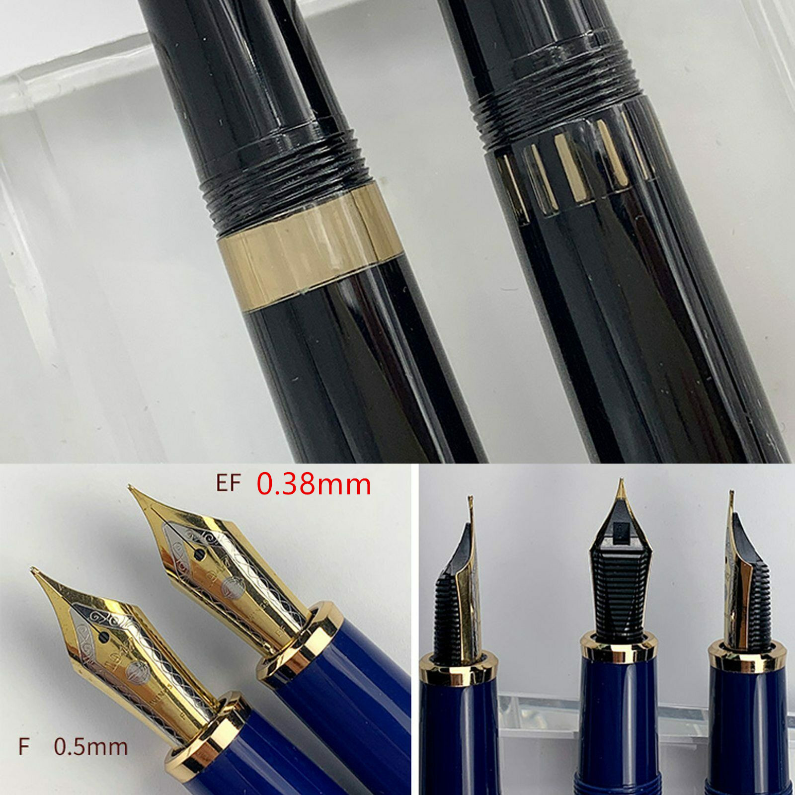 Specifications: Brand: Wing Sung 629 Nib: Iridium Extra Fine(EF)/0.38mm, F/0.5mm Material: Acrylic Resin Cap: Screw Type Length: 146mm/5.75in Diameter: 16mm/0.63in Converter: piston type Application: Office/Business/Writing/Students/Calligraphy/Collectibles/Gift