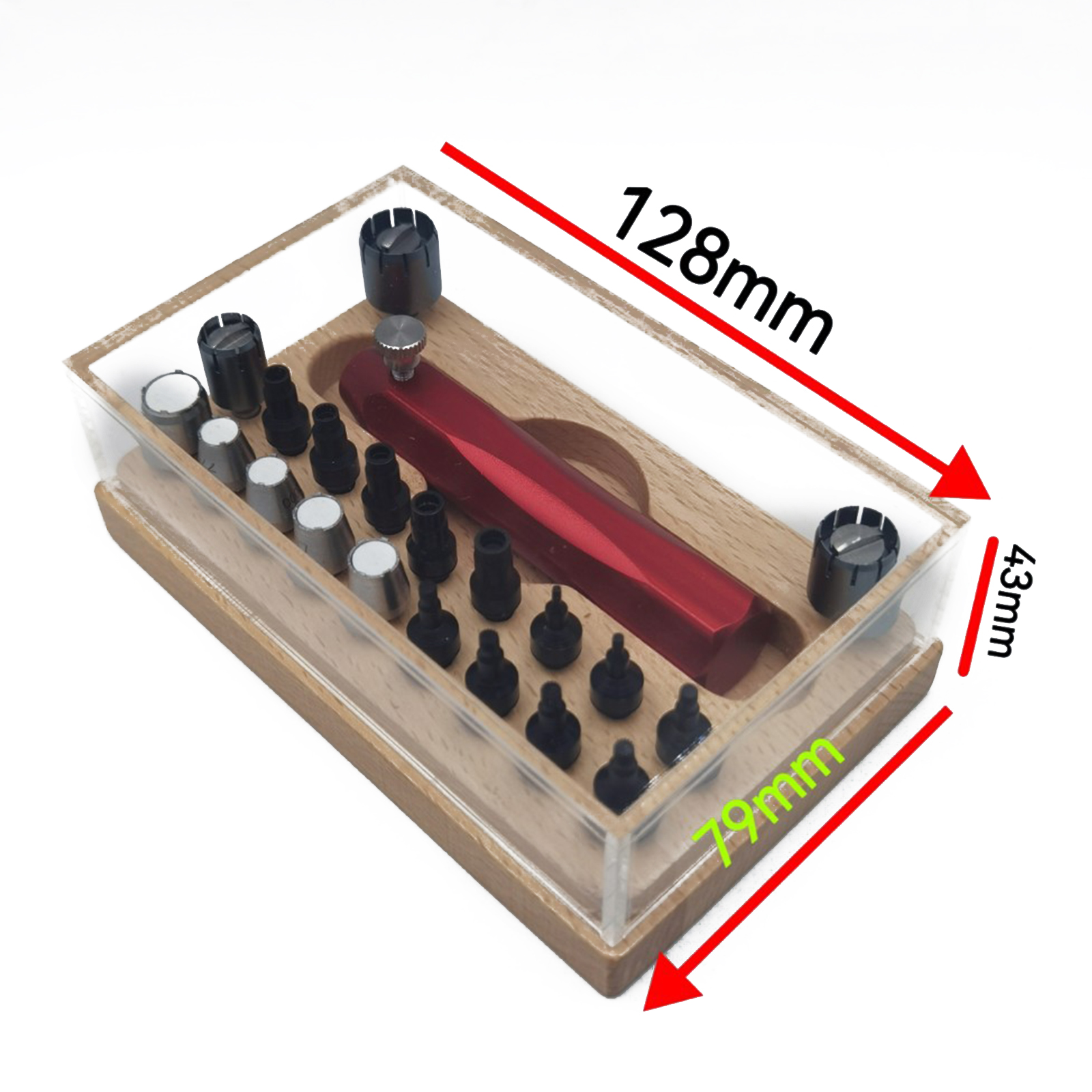 Features: 1. Crown Tube Remover: This watch crown removing tool can be used for screw in push rods, pipes, pendulum screw and battery covers, etc. 2. Handle and Base: This watch crown tube remover is equipped with nonslip red handle and base, more convenient to operate. 3. Easy Operation: This watch tube removing tool is suitable for for tightening or loosening balancing arbor screw, assembling or disassembling screw in crown tube and battery cover relevant tools. 4. Widely Compatible: This watch screwdriver removal tool with complete accessories is suitable for various models. 5. Stainless Steel: This watch crown tube removing tool is made of premium stainless steel material, which is strong and durable.