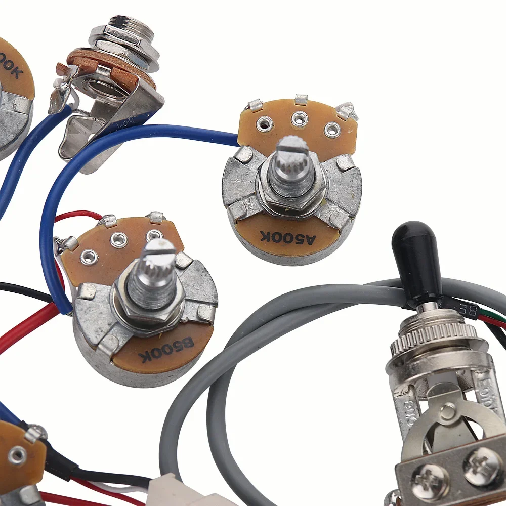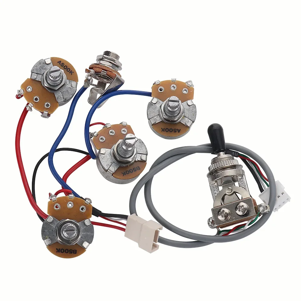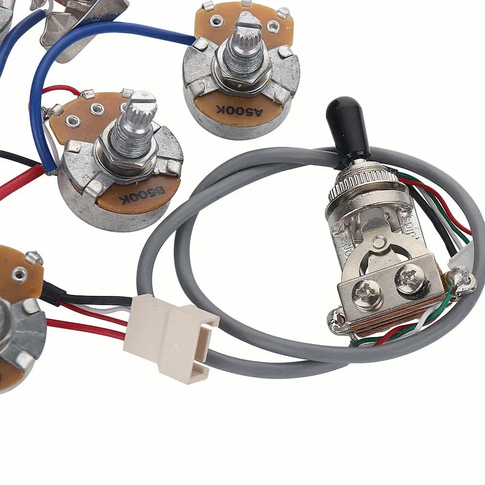 规格:套装电路总成,包含一个三档档位器,四个大电位器(2个A500K和2个B500K)1个插口.(不包含拾音器),插接式连接!