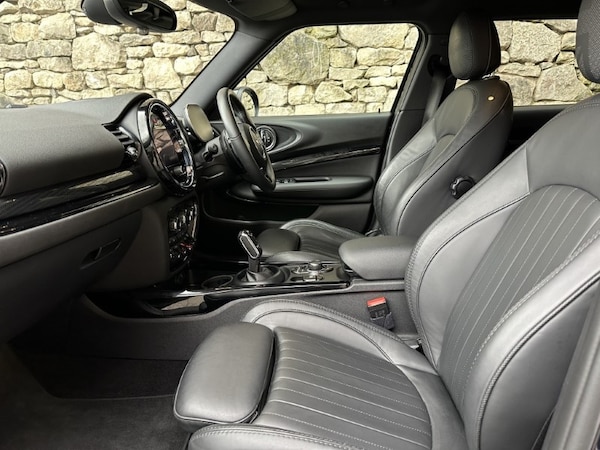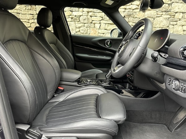 Here at Lloyd MINI South Lakes, we are delighted to welcome this Enigmatic Black Metallic MINI CLUBMAN 2.0 178 Cooper S Exclusive with MINI Yours Leather Lounge upholstery, to our range of Approved Used cars. It comes with a full-service history. Also covered by MINIs manufacturer's warranty for 12 months. The MINI Clubman Cooper S strikes the perfect balance between desire and practicality, featuring a refined design, six doors, and space for the whole family. Small in size but big in presence. This MINI Clubman is powered by a 2.0L engine, delivering a powerful 189bhp for a responsive and reliable driving experience. It sits on 18'' Star Spoke Black Alloys with Darkened Glass on the rear windows, complimenting the style of this MINI Clubman Cooper S Exclusive. The front of the MINI Clubman is equipped with bright LED headlights, ensuring excellent visibility on every journey. Step Inside with Comfort Access where the MINI is enhanced with the Comfort Plus Pack adding a relaxing atmosphere with automatic air conditioning and Front Heated Seats, paired with a Front Armrest with an extended storage compartment to keep all your belongings safe. Dive into the centred Digital Cockpit with Ambient Lighting shines bright through the interior letting you dig into all the apps you need for a relaxing drive. On board navigation paired with Cruise Control making them longer journeys a breeze. Integrate your phone through Apple Carplay and keep up to date with on coming calls and messages safely while you enjoy your favourite music through the MINI Sound System. When it's time to park up the rear of the MINI Clubman comes with Rear Parking Sensors with Reversing Camera allowing you to get into tighter spaces with ease. Finishing off with MINI Driving Modes allowing you to tailor your drives the way you want with sport mode or green mode. Come and visit Lloyds South Lakes MINI to book your test drive of this wonderful MINI Clubman Cooper S Exclusive.