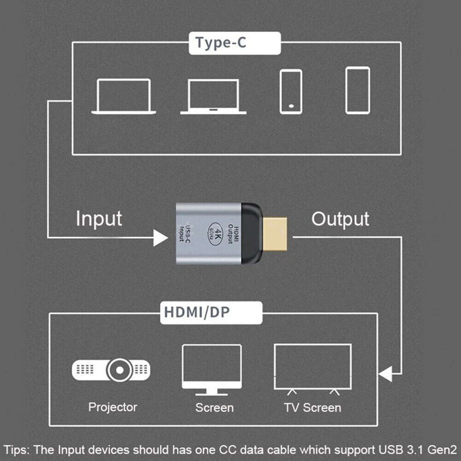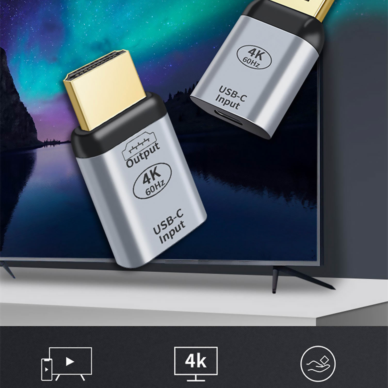 Enjoy your favorite movies, games, or presentations in stunning 4K resolution at 60Hz on your TV, projector, or monitor.
