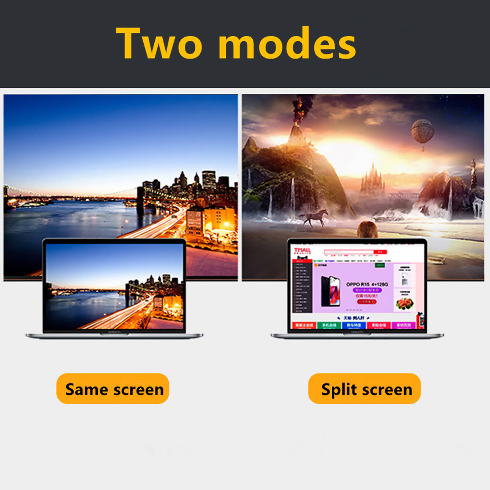 Seamless screen mirroring, easily mirror your mobile phone, tablet, or laptop screen onto a larger display. Perfect for gaming, video streaming, and business presentations.