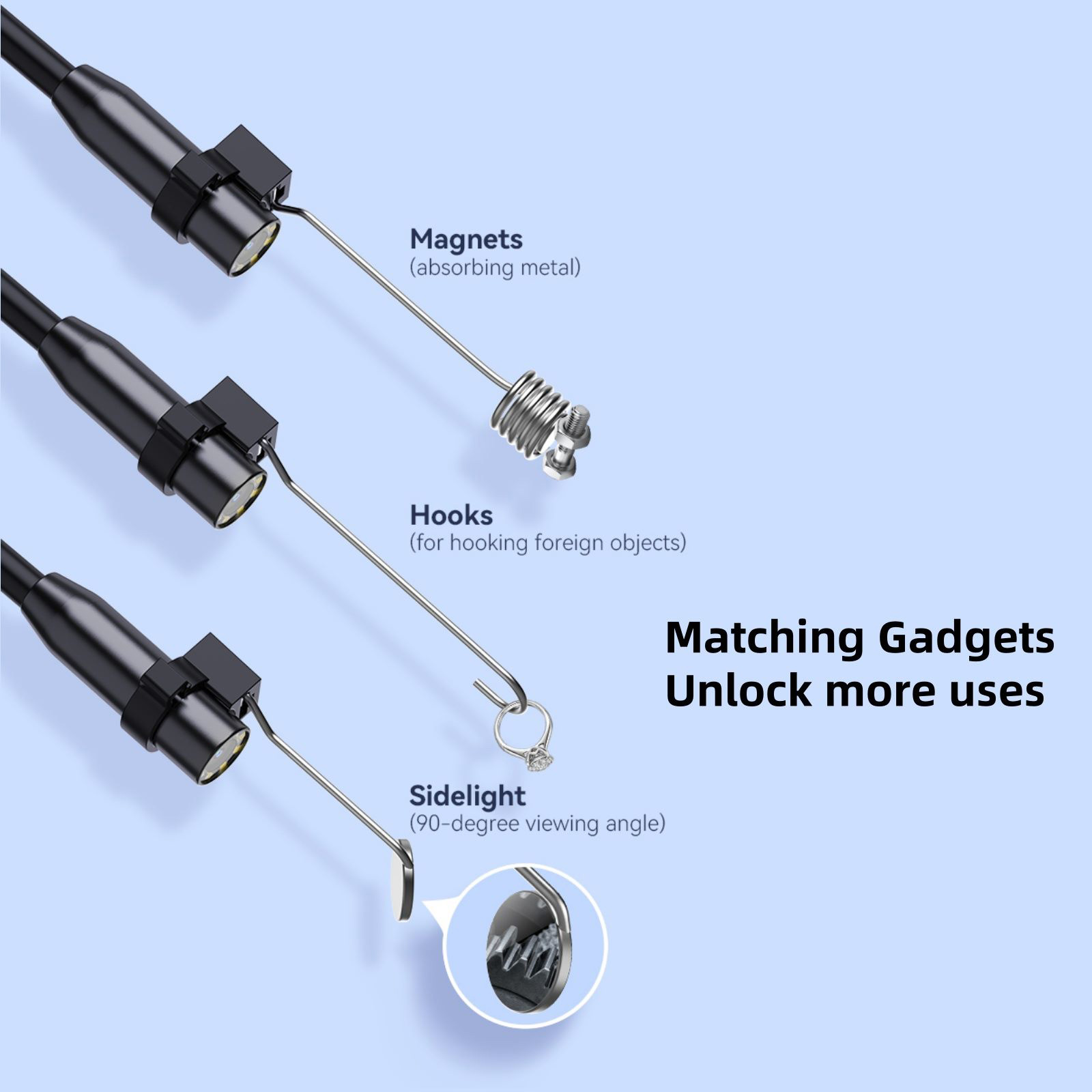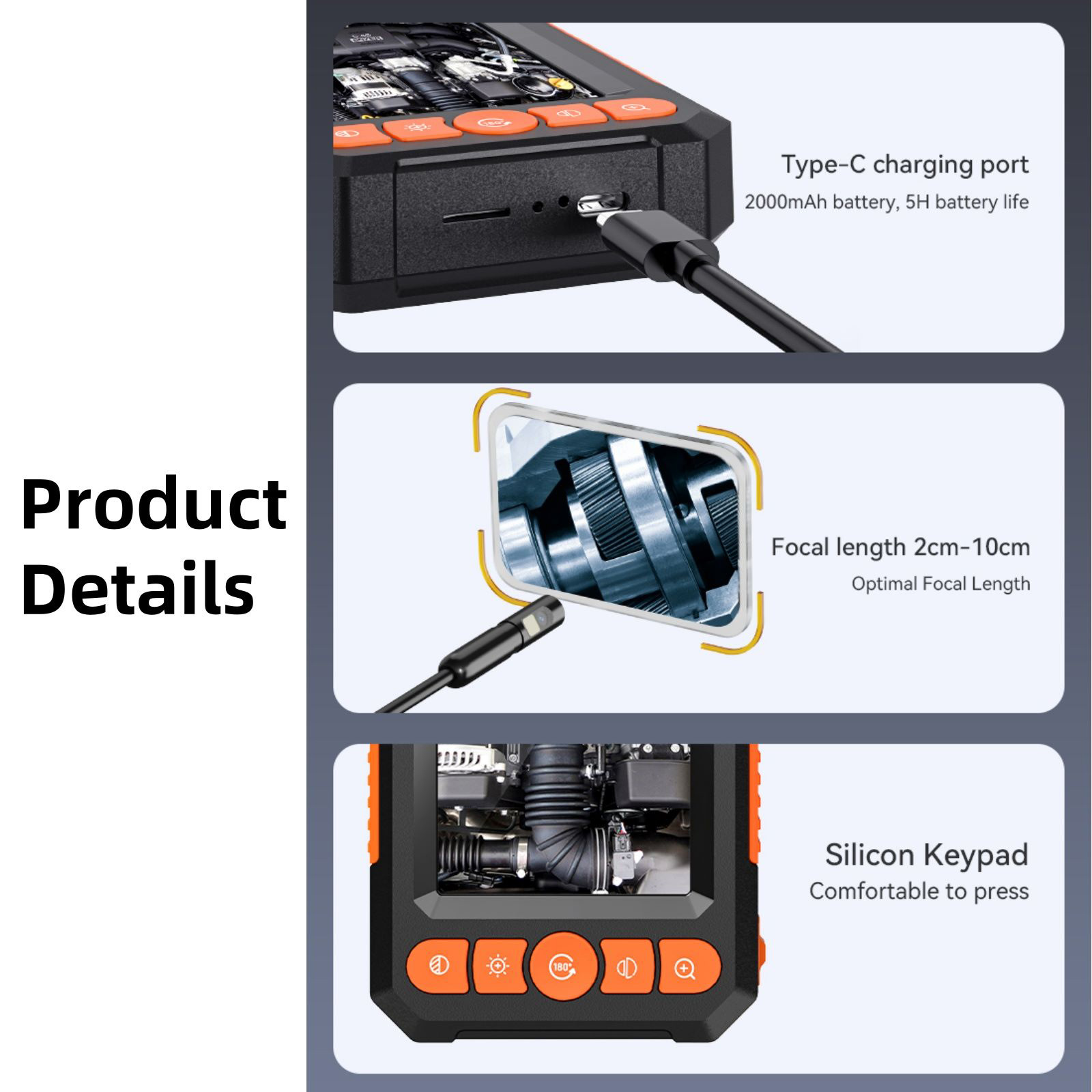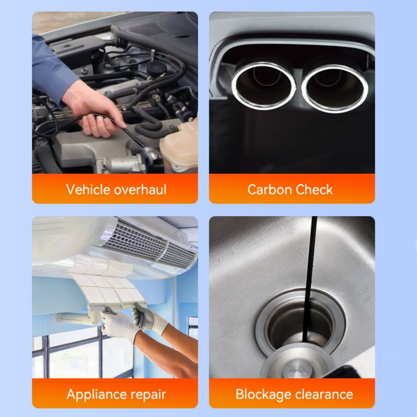Ultra-Thin Probe and Flexible Inspection: 8mm ultra-thin lens paired with a waterproof flexible cable enables access to tight spaces, such as cylinders, engine interiors, reaching areas beyond traditional tools.