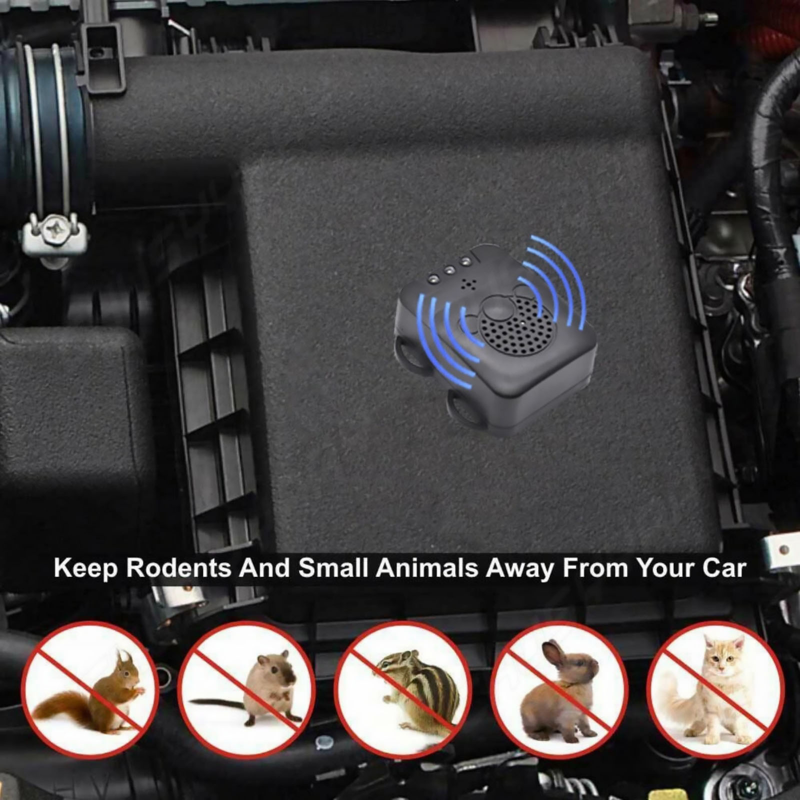 The sound waves from this device will chase pest animal like mice,rat,mole even squirrel under hood.