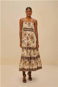 - Farm Rio Sand Aura Floral Sleeveless Midi Dress