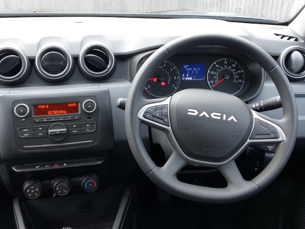 This is a Click & Collect location. Find your perfect car online and we’ll bring it closer to you. Reserve your favourite for only £99 and arrange collection to this branch. Contact us to learn more. Cruise control and speed limiter, eCall emergency system, Eco mode, On board computer, odometer, trip computer, average fuel consumption, average speed, service indicator, outside temperature gauge, Rear parking sensors, Stop/start system, Dacia plug and radio/MP3/USB/bluetooth/DAB/steering wheel control, Dusk sensor, Daytime running lights, Electric front windows, Front fog lights, Rain sensor, Rear spoiler, Backlighted steering wheel buttons, Gear shift indicator, Manual air conditioning, Soft feel leather steering wheel, Hill start assist
