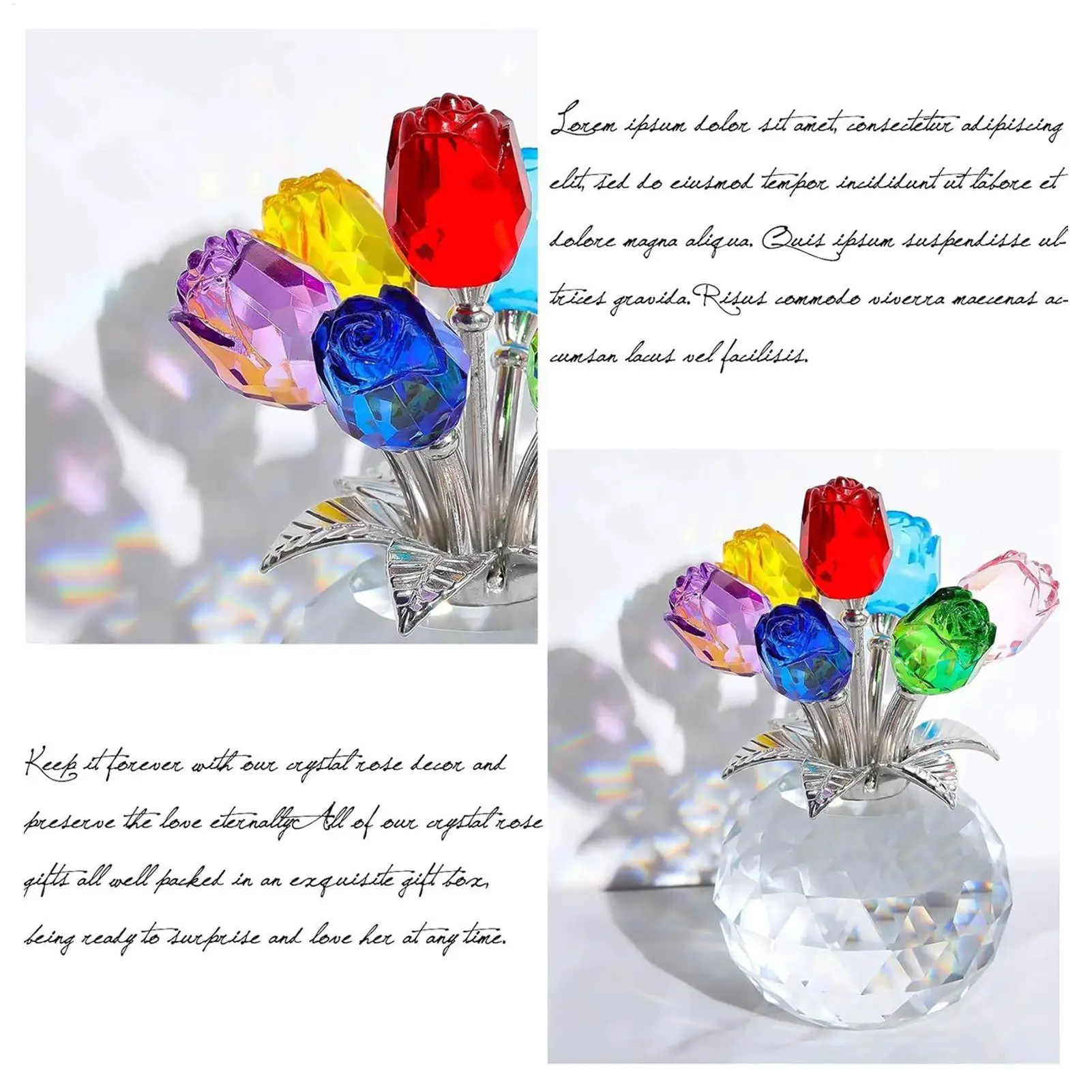 Specification: Product name: rose ornaments Product material: crystal, metal Product size: about 8x7x10.5cm/3.15x2.76x4.13 inches Product weight: 290 g