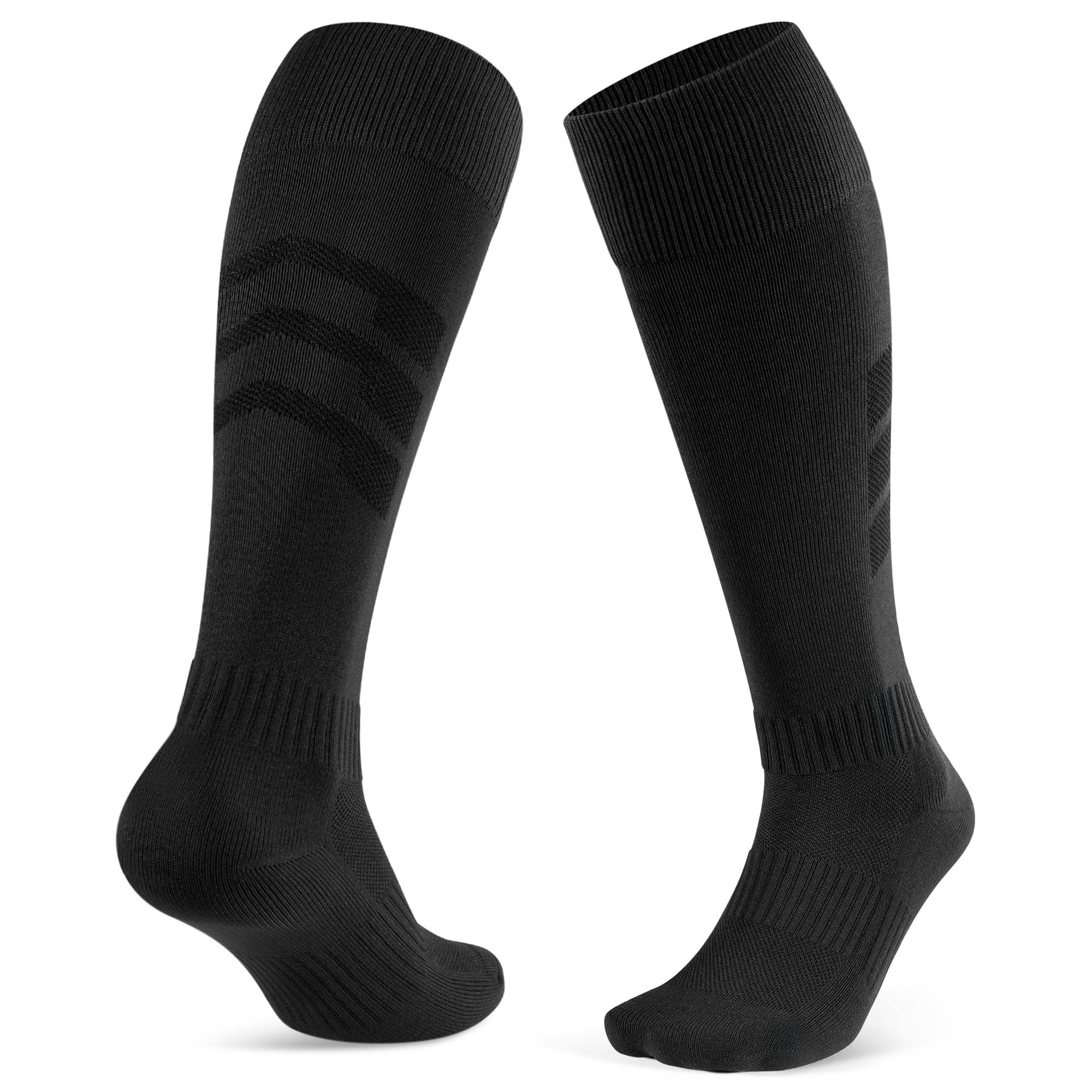 CLOSEMATE 2 Pairs Football Knee High Sport Socks for Men Women 9-12, 2 Black