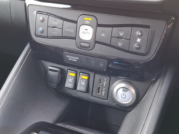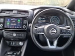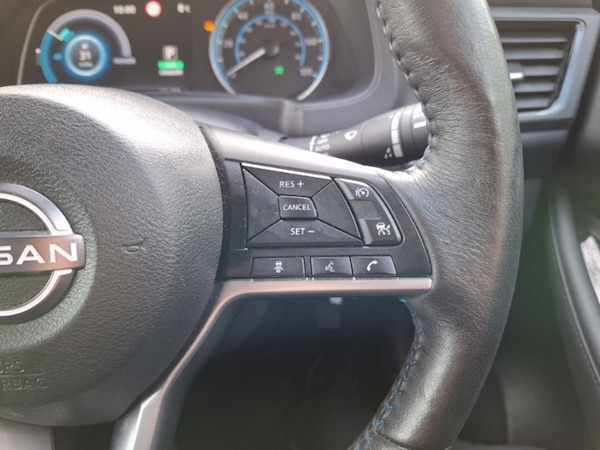 360 degree colour camera view, Apple car play/Android Auto, Blind spot intervention, Intelligent Cruise control (ICC), Front and rear parking sensors, Intelligent around view monitor, Blind spot warning, 8"" colour display with touchscreen, Intelligent lane intervention, Intelligent driver alert system, Lane departure warning system, Moving object detection, Navigation system with voice control, Nissan connect services app (air conditioning control, cabin heating and charging), Speed limiter, Rear cross traffic alert, DAB Digital radio, Bluetooth with audio streaming, Audio system with USB, Rear USB ports, Auto dimming rear view mirror, Automatic activation of hazard warning lights, Automatic rain sensing wipers, Electric front/rear windows, Electrically adjustable and folding door mirrors, Follow me home headlights, High beam assist, Intelligent auto headlights, LED signature daytime running lights with directional indicator, LED signature rear lights, LED third brake light, Rain sensor, Rear privacy glass, 60/40 split folding rear seat, Automatic climate control with pollen filter and timer, Isofix child seat anchor points, Woven fabric upholstery, Heat pack with Heated front seats - Leaf, Curtain airbags, Electrically driven intelligent braking system, Hill start assist, Intelligent emergency braking with pedestrian recognition, Intelligent ride control, Intelligent trace control, Mechanical parking brake, Side airbags, Thatcham Cat.1 alarm, Remote central locking, Intelligent Key with push button starter, Immobiliser, 17"" Diamond cut black alloy wheels