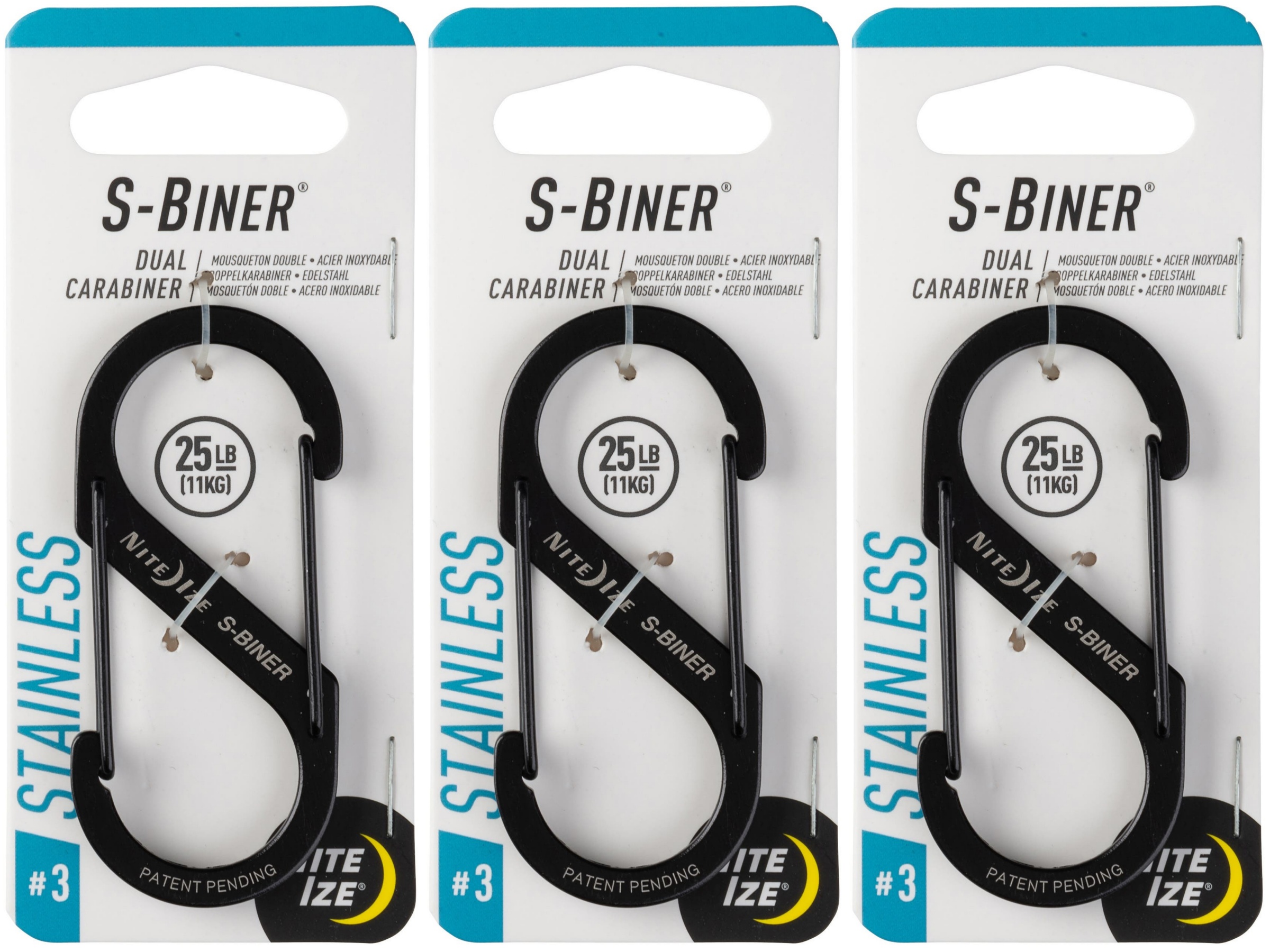 Nite Ize S-Biner Stainless Steel Dual Carabiner #3 - Black (3-Pack)