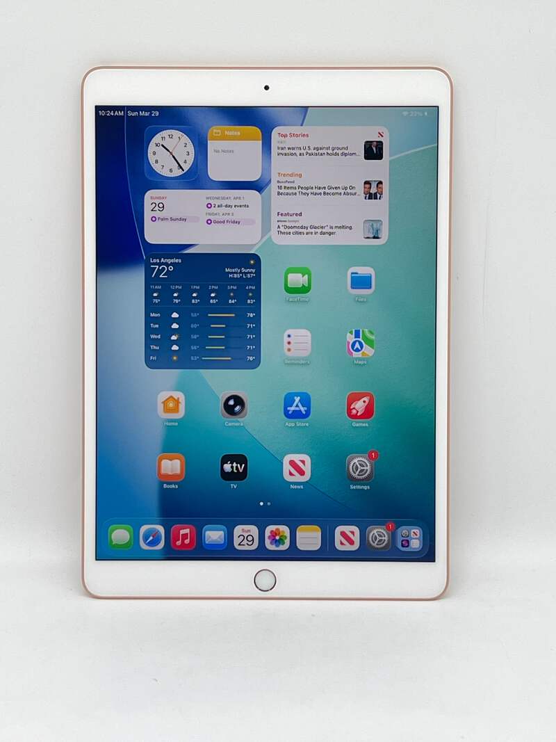 This Apple iPad Air (3rd Generation) is offered in Rose Gold and comes with 64 GB of storage. It features a 10.5-inch IPS LED display with a maximum resolution of 2224 x 1668, powered by an Apple A12 Bionic processor with a Hexa Core design and 2.49 GHz processor speed. The tablet runs iOS and includes Accelerometer support.