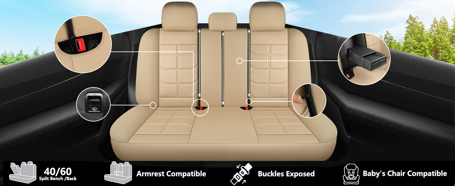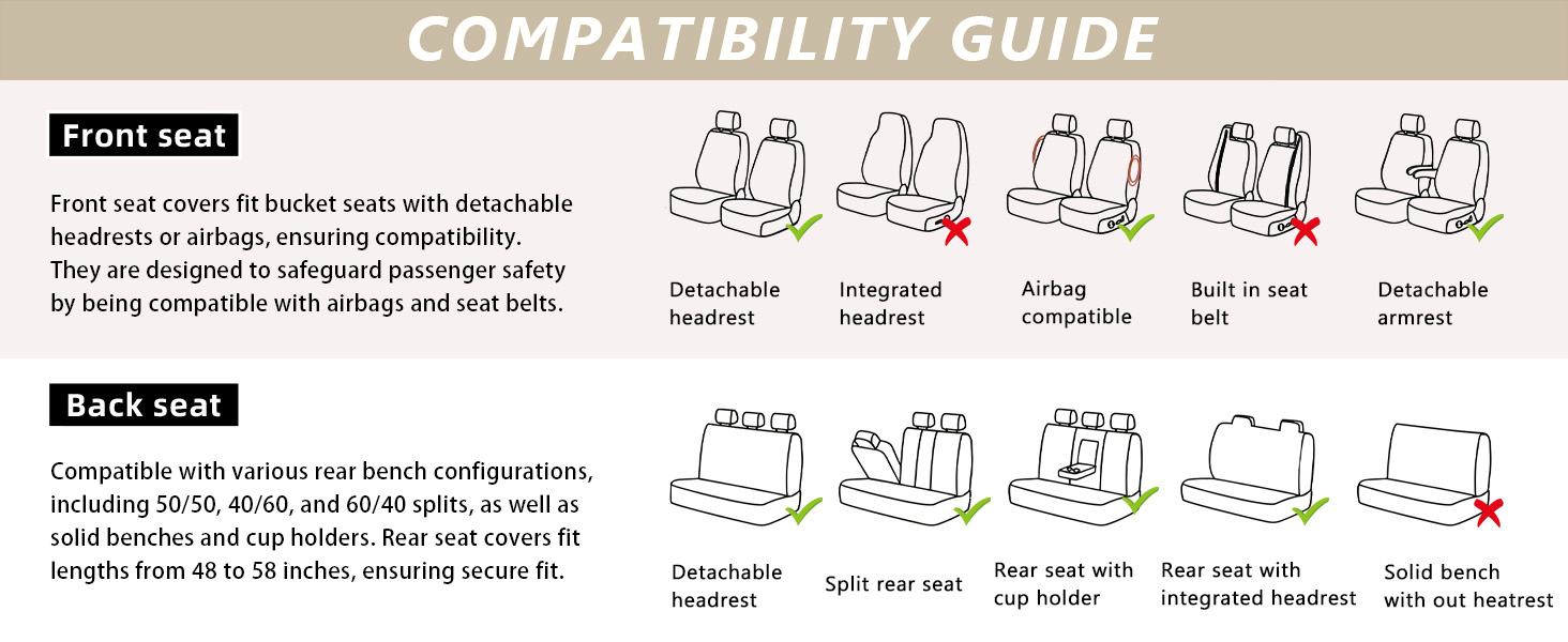● Fit:Detachable headrest/Airbag Compatibility/Solid Bench/Split Bench/Cup Holder/Molded Headrest