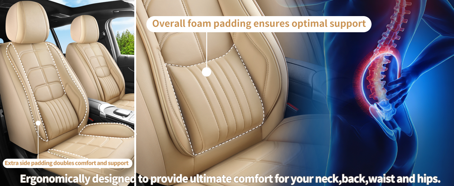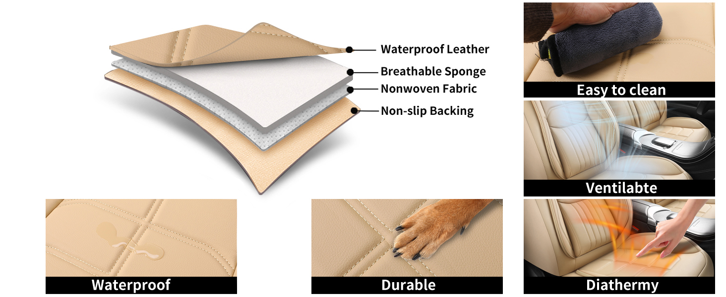 Soft PU Leather, breathable, and wear-resistant. Easy to clean with a damp cloth – perfect for busy drivers, pet owners, and families.