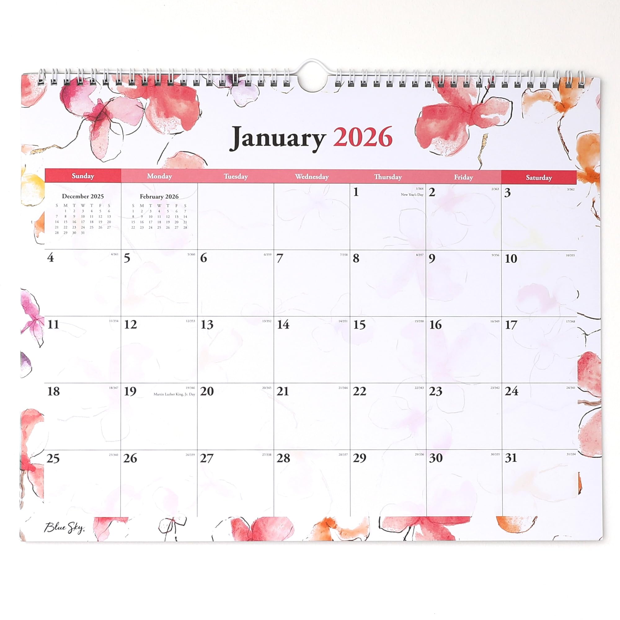 The Blue Sky collection of beautiful and functional planning products and accessories inspire busy individuals to live a well-designed life. This monthly wall calendar acts as a great tool to get you organized. Elegant page designs add a touch of style while unlined planning blocks offer plenty of room for all of your important information. Previous and next month reference calendars make it easy to track important dates. High quality FSC certified white paper provides clean writing space for jotting down your appointments and reminders. Easily removable pages enable you to move onto the next month in a breeze. With durable twin-wire binding and high quality paper, this spiral wall calendar dated January 2026 - December 2026 is perfect for everyday use throughout the year. This 15” by 12” wall calendar is ideal for business professionals, teachers, professors, administrators, students or anyone else with a busy schedule. Pair this calendar with other coordinating items from Blue Sky, including appointment books and planners, for a complete planning system. Whether you're organizing your professional life, academic schedule, or personal goals, this Blue Sky 2026 calendar is the perfect organizational tool to help you stay on track, motivated, and in control of your time.