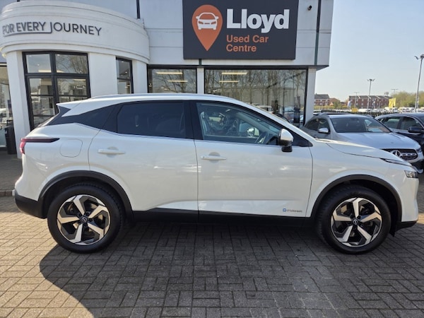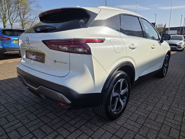 Conveniently located less than a mile from junction 44 off the M6 Lloyd Used Car Centre Carlisle are delighted to offer this NISSAN QASHQAI 1.5 E-Power N-Connecta 5dr Auto with full service history finished in a gleaming white paintwork complimented with 18 inch alloy wheels and privacy glass. First registered on 26-02-2024 and comes complete with an up-to-date Service, MOT and our market leading 12-month nationwide warranty and breakdown ensuring complete peace of mind. This comes with a range of great features the interior is adorned with a fabric upholstery, the touchscreen infotainment system with CarPlay allowing you to seamlessly connect your phone for apps, music, and navigation on the go, and with the built in navigation allows you to reach your destination with ease. This luxurious Qashqai features a 360 camera giving you complete awareness of your surroundings for stress-free parking and with parking sensors it makes parking simple with audible alerts to guide you into any space. With this Qashqai you can let the sunshine pour in through the panoramic roof and transform everyday trips into something special. Lloyd Used Car Centre are extremely proud to offer what we believe are the very best quality and selection of used vehicles in the local area, our vehicles are carefully selected by our sales manager Richard who has over 30 experience in the motor industry giving him the insight to select the very best vehicles from our colleagues within the multi award winning family-owned Lloyd Motor Group, one of the UKs leading independent vehicle retailers.