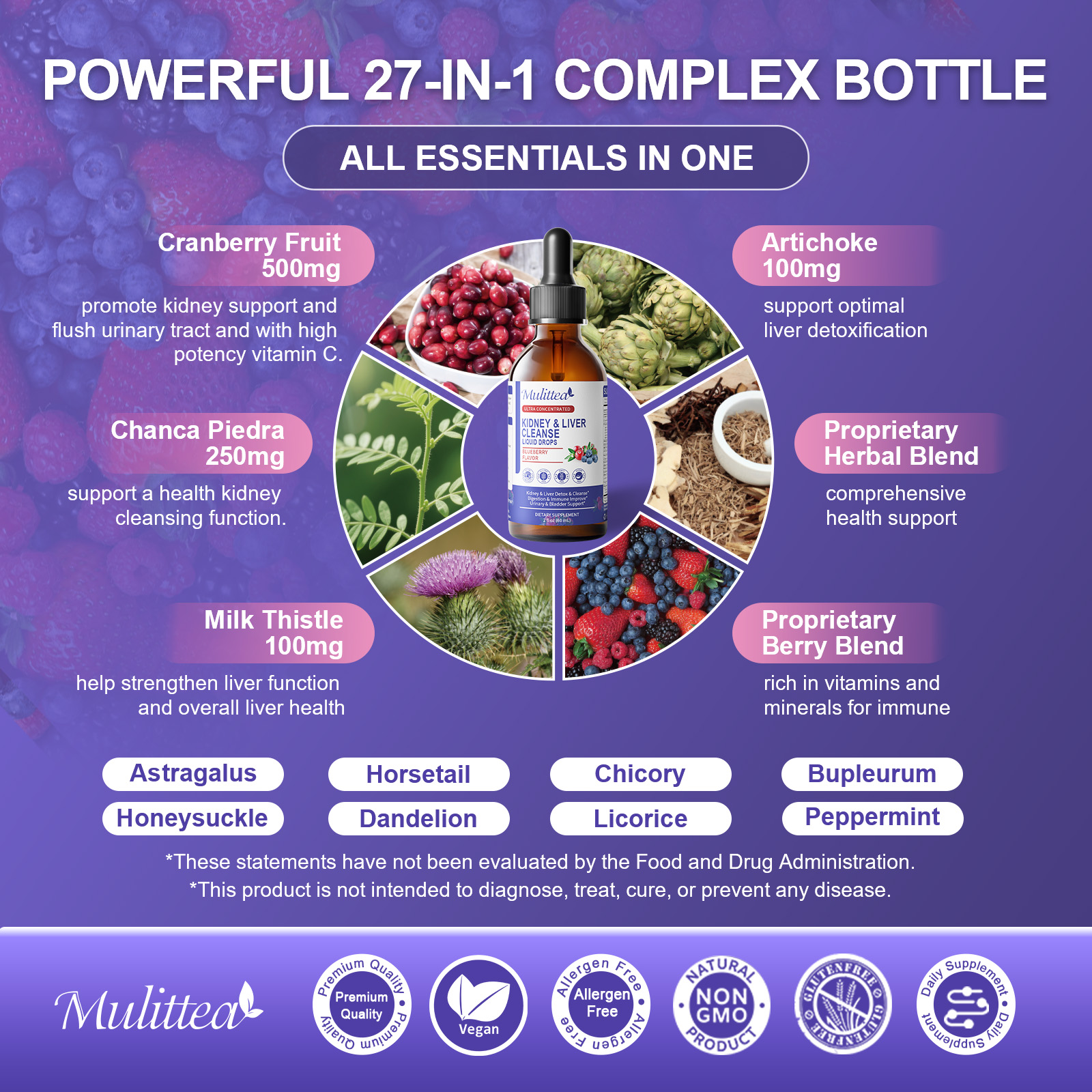 | Active Ingredients | Chicory, Cranberry, Chanca Piedra, Astragalus, Milk Thistle, Artichoke, Horesetail, Bupleurum |
