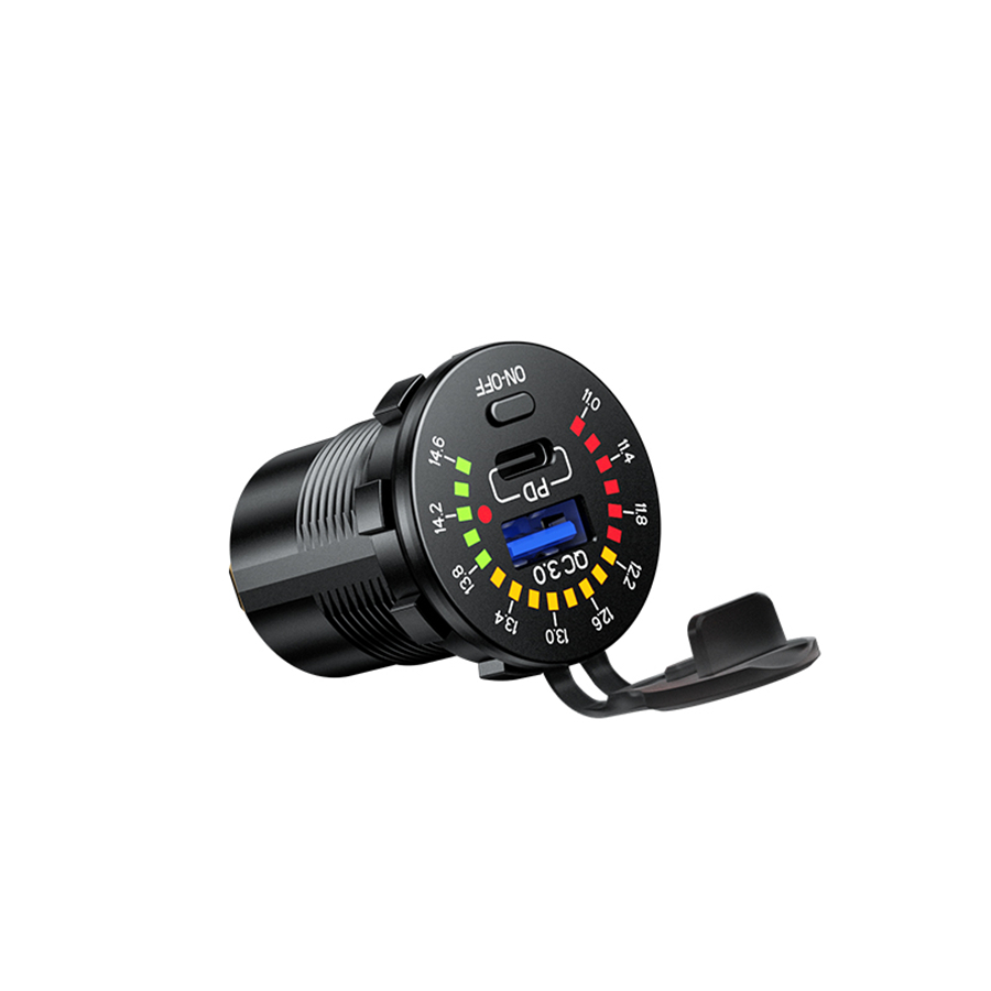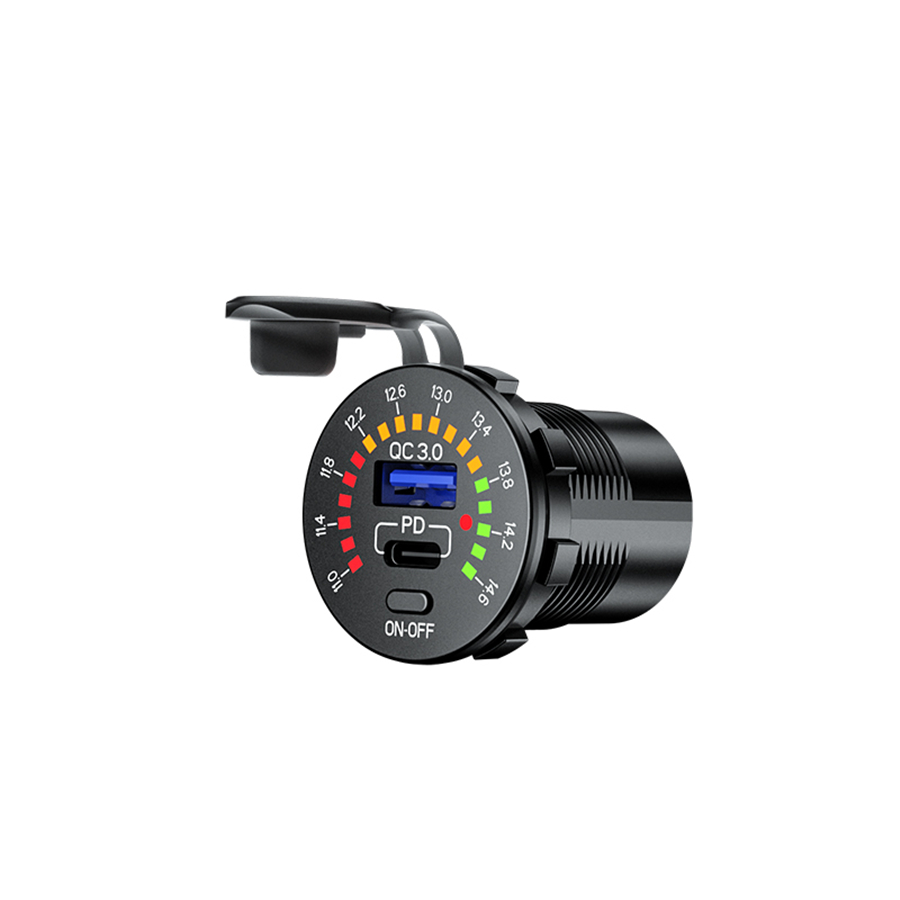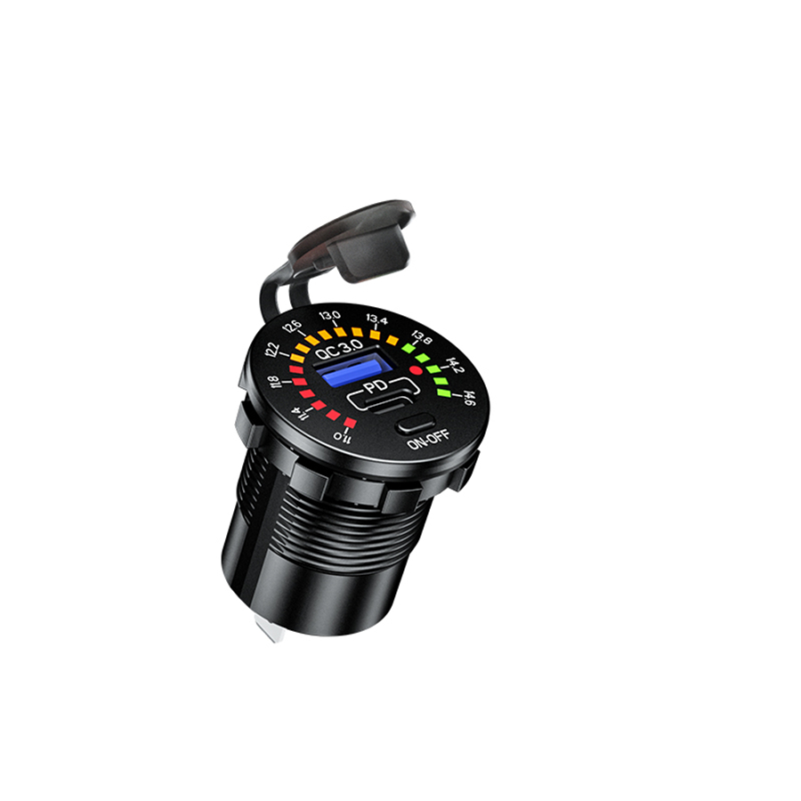 QC 3.0 + PD Type-C Dual USB Charger Phone Fast Charge with LED Voltmeter ON OFF Power Switch For Car Boat Motorcycle