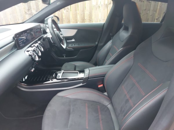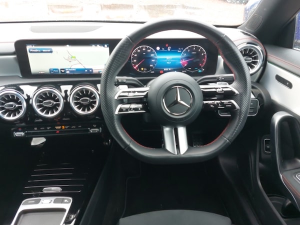 18"" AMG 5 twin spoke light alloy wheels painted in termolite grey with high sheen finish, Smartphone integration with Apple CarPlay and Android auto, Hey Mercedes Voice activation, DYNAMIC SELECT with a choice of driving modes (ECO, Comfort, Sport and Individual), 10.25 inch touchscreen central media display, 10.25 inch Instrument display with digital cockpit, Air conditioning - One zone thermatic automatic climate control with automatically controlled air distribution, Speed limiter, Cruise control, Remote central locking and crash sensor with emergency opening function, Parking pack with reversing camera - CLA, AMG body styling with AMG front apron and rear apron and visible exhaust tailpipe in chrome trim elements, Keyless go comfort pack - CLA with easy pack tailgate, Seat comfort pack - CLA, USB package plus - CLA, Light and sight pack - CLA, Mirror pack - CLA, LED Headlights, LED daytime running lights, Alarm system with immobiliser and interior protection -Thatcham category 1
