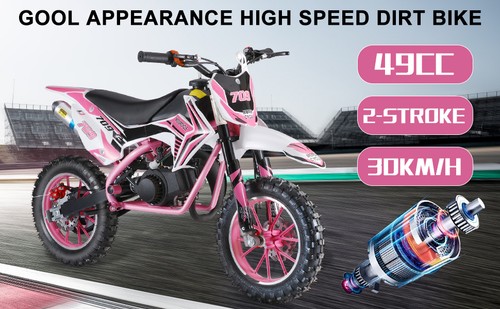 49cc Kids Dirt Bike: The perfect entry-level dirt bike for kids. The latest generation of 49cc mini bike engines is faster, more torque, more reliable and even easier to set up and start than ever before. Easy pull starting, improved carburetor and all the standard safety features, support and reliability offered by. Suitable for wet and dry conditions. This bike will provide hours of fun in almost any outdoor environment for children. This bike is tough enough to handle any off-road ride.
