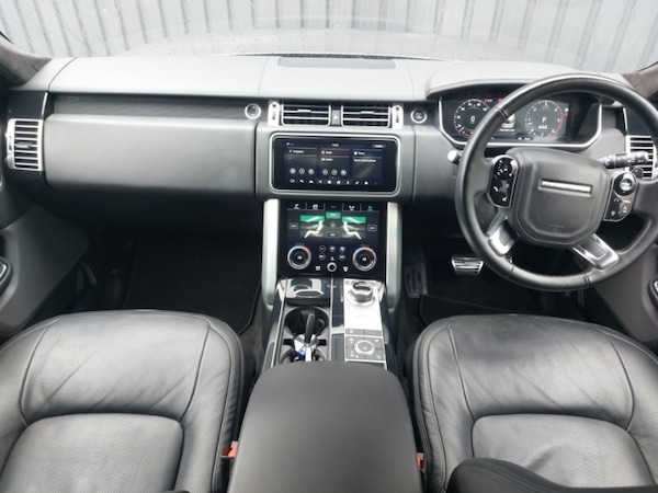 Android Auto, Apple car play, Bluetooth mobile phone connection, Dynamic route guidance, Interactive Driver display instrument cluster, Lane departure warning system, Navigation pro system with 10"" touch screen, app interface and media storage, Voice control system, Rotary shifter, Rear camera wash, Push button starter, Powered gesture tailgate/boot lid, Electric power assisted steering (EPAS), USB socket, InControl app, Digital TV, Digital Audio Broadcast radio-DAB, Auto dimming interior rear view mirror, Automatic headlights, LED rear lamps, Power fold, auto-dimming, heated door mirrors with memory and approach lights, Sliding Panoramic roof includes gesture sunblind and auto sunblind, Heated steering wheel, Smartphone pack - Range Rover, Black exterior pack - Range Rover, Keyless entry