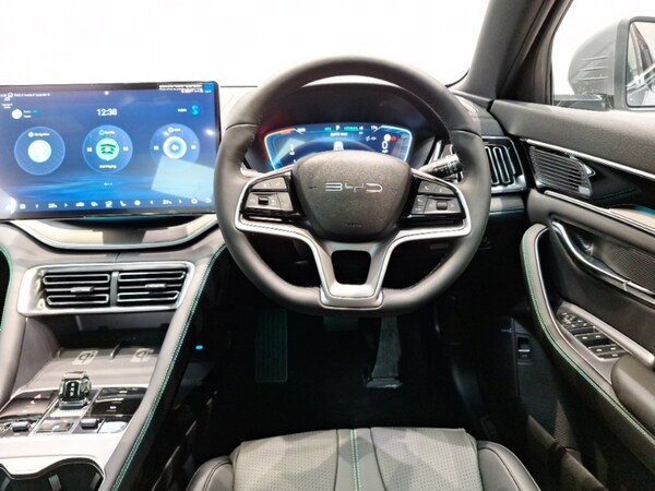 This is a Click & Collect location. Find your perfect car online and we’ll bring it closer to you. Reserve your favourite for only £99 and arrange collection to this branch. Contact us to learn more. 360 camera, Adaptive Cruise Control (ACC) and Intelligent Cruise Control (ICC), Electric tailgate release, Head up Display, Keyless system entry and start, Lane Departure Assistant (LDA) and Lane Departure Warning (LDW), Lane departure prevention, Heat pump, Heated steering wheel, Heated front seats, BYD voice control assistant ""Hi, BYD"", PAS, Infinity sound system with 10 speakers, FM/DAB+ radio, 15.6"" Electrically rotatable touchscreen, Electric folding and heated door mirrors, One touch electric front/rear windows with pinch protection, Panoramic sunroof with anti-pinch sensor and electrically adjustable sunshade, Rear window and rear windscreen with tinted glass, 8 way electrically adjustable drivers seat, ISOFIX and i-Size for front passenger and outer rear seats, Split folding rear seats - 40/60, Vegan leather multifunction steering wheel, Vegan leather upholstery, Ventilated front seats, ABS/EBD, 3x3 point rear seatbelts, 19"" Bi-colour alloy wheels