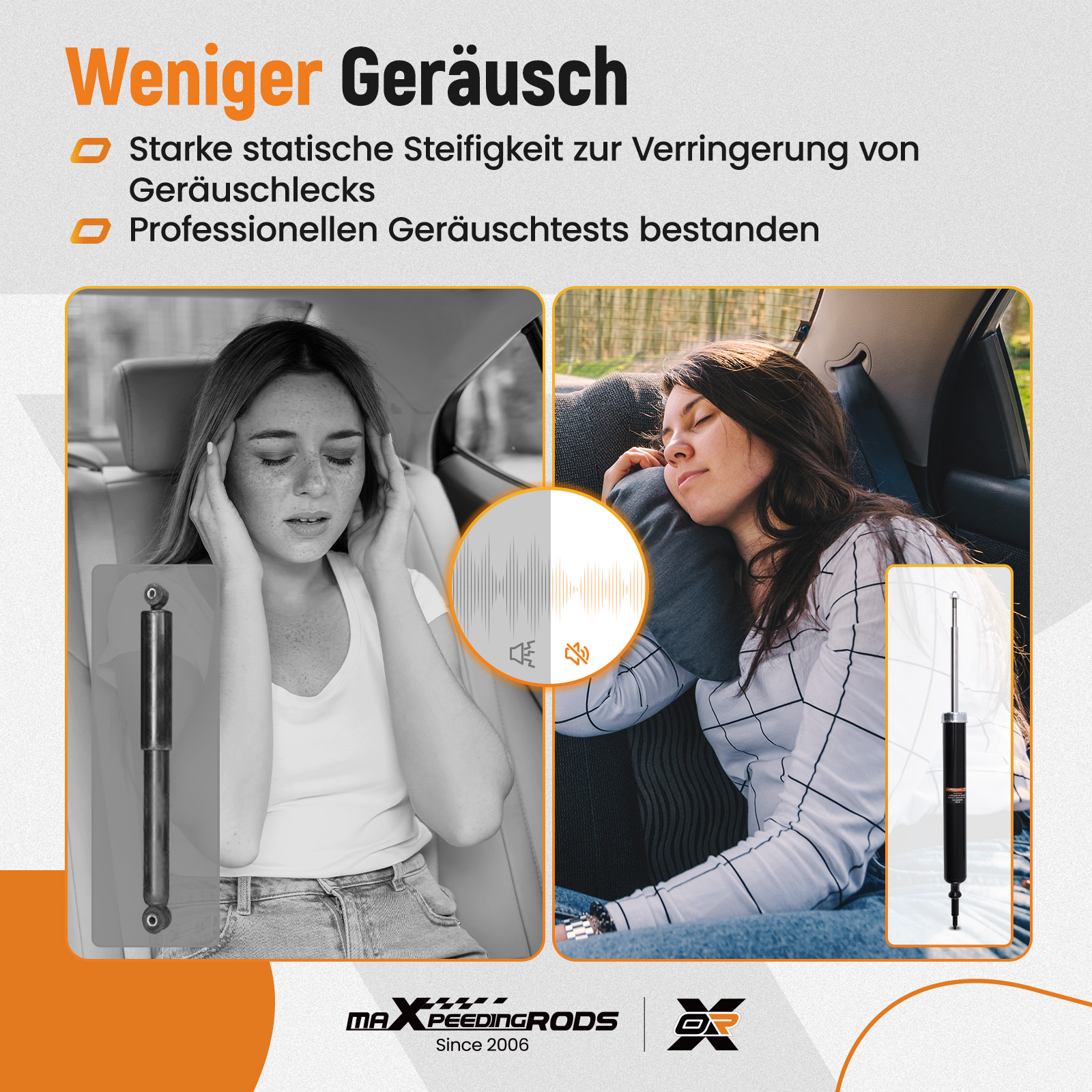 6. Das hochsteife obere Domlager reduziert die durch die Stoßdämpferbewegung erzeugten Vibrationen und mindert Geräusche.